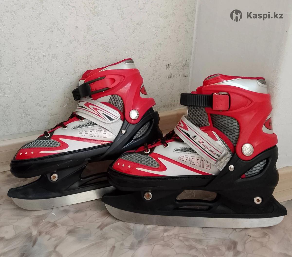 Коньки, современные, с пластиковыми фрагментами, в красных тонах, размер примерно 36, в отличном состоянии, б/у.