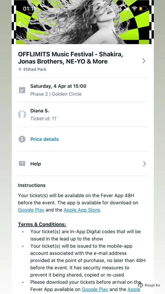 Продам 2 билета на концерт Шакиры в Абу-Даби, 4 апреля Зона ПРЯМО У СЦЕНЫ! Хорошая цена, чтобы увидеть мировую звезду в метре от себя! Продаю т.к. лечу в другой город. Цена указана за 2 билета Можно договориться Билеты будут доступны в приложении, аккаунт от которого я передам и у вас будет прямой доступ к оригинальным билетам.