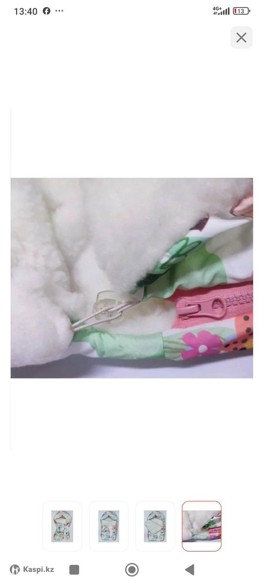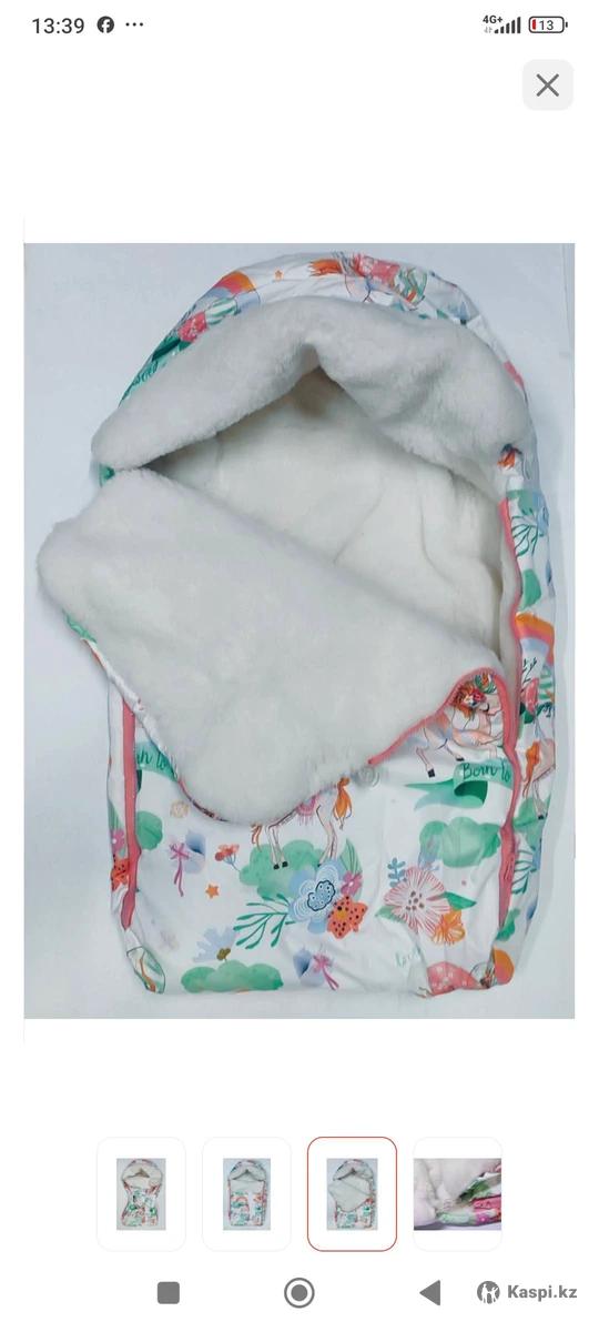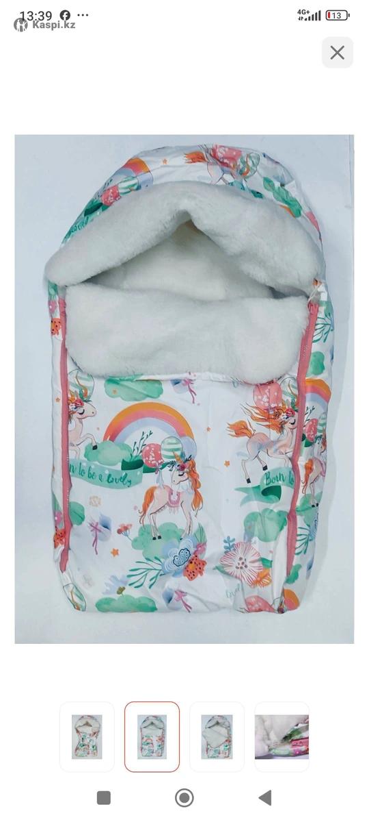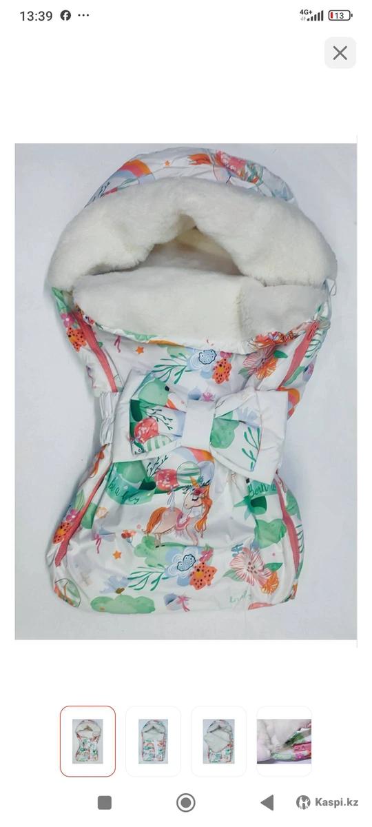 Конверт екі жақты замокпен,қалың,бантикімен бірге. Жаңбырлы күні су өткізбейді ,қарлы ,суық күндері қолдануға тапсырмас зат. Каляскамен қыдыруға,шанамен серуендеуге қолдануға болады. 74см.