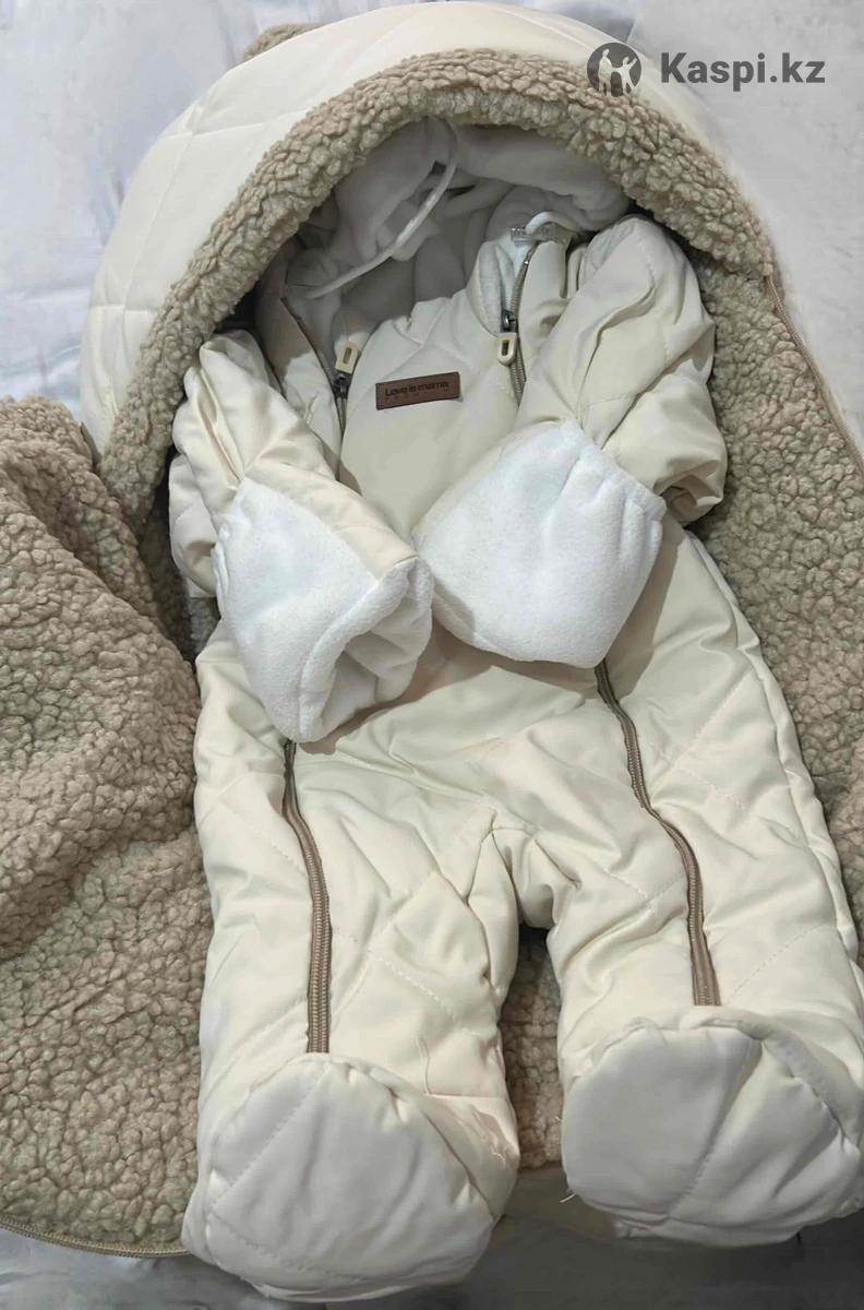 Конверт для новорожденных от бренда Dana Baby .Конверт + комбинезон с флисовым начесом внутри, оба утепленные. Материал непродуваемый и непромокаемый. Подходит для осени, зимы, весны. Одевали только на выписку. Цвет бежевый.