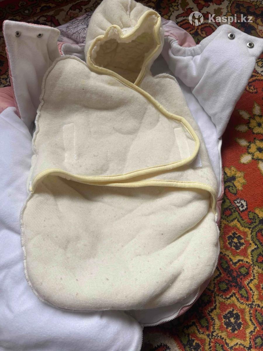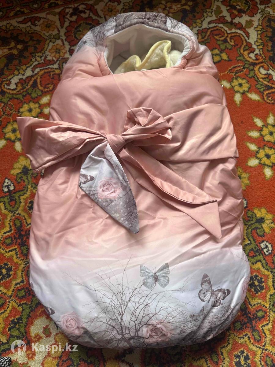 Конверт на девочку теплый. До 3 месяцев можно носить.