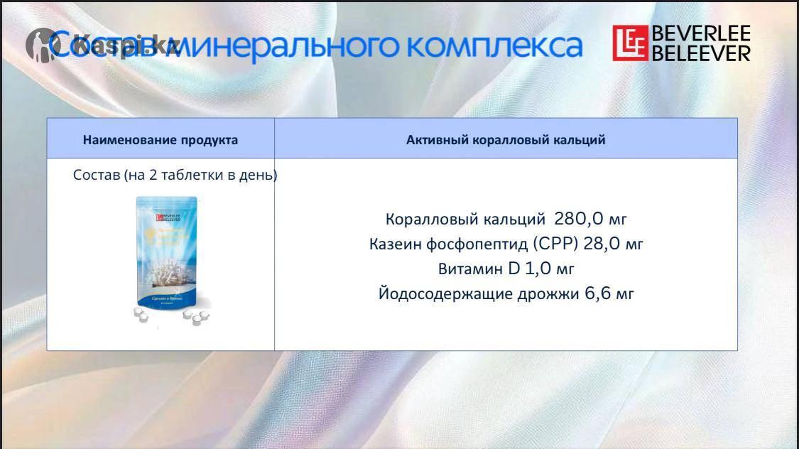 ☘️СПИСОК МИНЕРАЛЬНЫХ ЭЛЕМЕНТОВ, СОДЕРЖАЩИХСЯ В КОРАЛЛОВОМ КАЛЬЦИИ ИЗ ОСТРОВОВ ОКИНАВА (в мг/м3) ☘️ 1. Кремний - Si 18318 2. Кобальт - Co 11 3. Золото - Au 0.05 4. Цинк - Zn 16 5. Алюминий - Al 1693 6. Хром - Cr 20 7. Гольмий - Ho 0.091 8. Цирконий - Zr 1 9. Кальций - Ca 240000 10. Церий - Ce 20 11. Индий - In 0.06 12. Осмий - Os 0.2 13. Магний - Mg 14120 14. Медь - Cu 23 15. Иридий - Ir 0.04 16. Палладий - Pd 0.025 17. Натрий - Na 3360 18. Литий - Li 9 19. Никель - Ni 7 20. Платина - Pt 0.03 21. Стронций - Sr 2770 22. Гафний - Hf 1 23. Марганец - Mn 20 24. Празеодим - Pr 2.73 25. Железо - Fe 979 26. Ванадий - V 20 27. Молибден - Mo 1 28. Рений - Re 0.2 29. Фосфор - P 280 30. Лантан - La 2 31. Ниобий - Nb 1 32. Родий - Rh 0.02 33. Сера - S 1780 34. Галлий - Ga 0.094 35. L - 0.66 36. Рутений - Ru 0.081 37. Калий - К 830 38. Олово Sn - 0,198 39. Вольфрам - W 0.1 40. Самарий - Sm 0.05 41. Серебро - Ag 7 42. Диспрозий - Dy 0.18 43. Рубидий - Rb 20 44. Скандий - Sc 0.049 45. Германий - Ge 0.191 46. Эрбий - Er 5.19 47. Сурьма - Sb 2 48. Тантал - Ta 0.01 49. Барий - Ba 10 50. Европий - Eu 0.1 51. Селен - Se 14 52. Теллур - Te 0.02 53. Висмут - Bi 4 54. Гадолиний - Gd 0.094 55. Иттрий - Y 3 56. Йод - 50 мкг 57. Диоксид кремния - 12 мг 58. Стеарат кальция - 12 мг 59. Витамин D3 - 100 МЕ 60.Казеин фосфопептида CPP - 28 мг