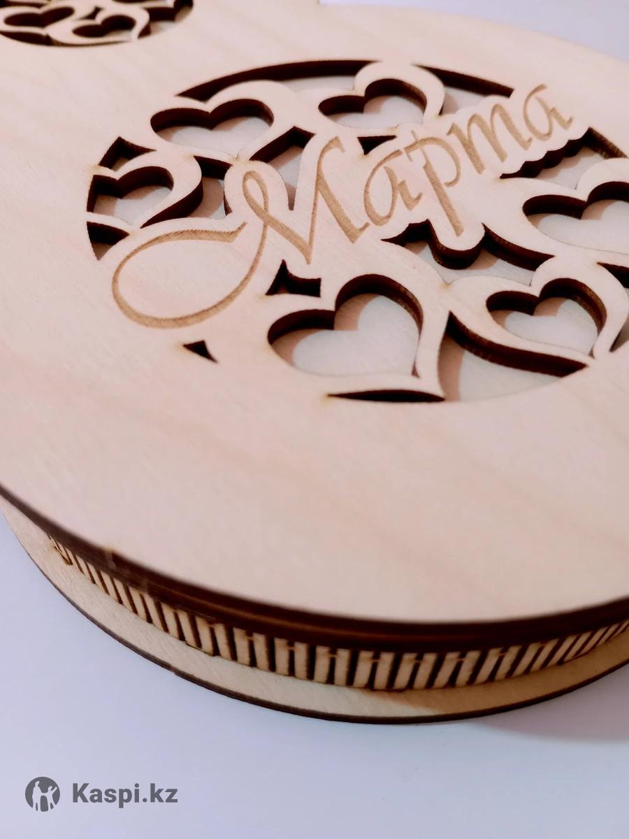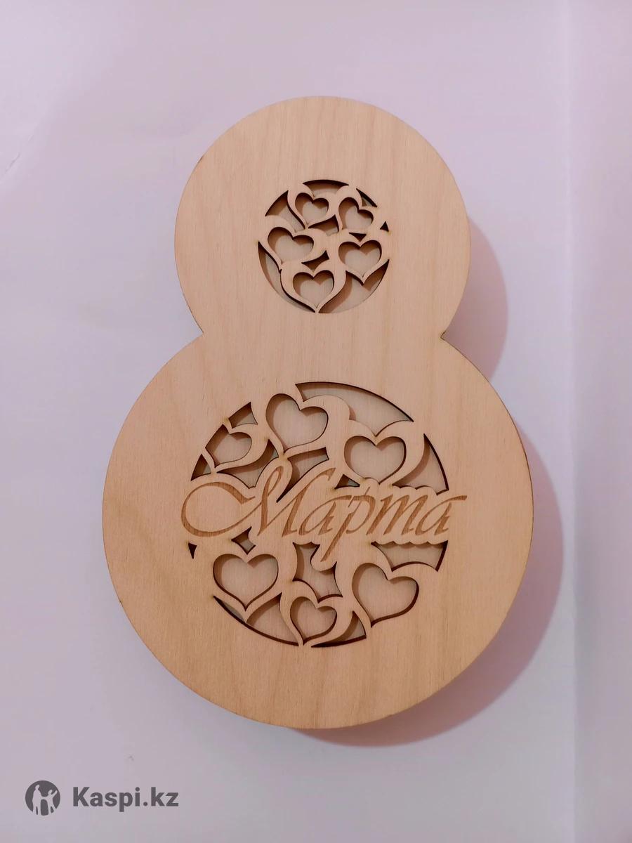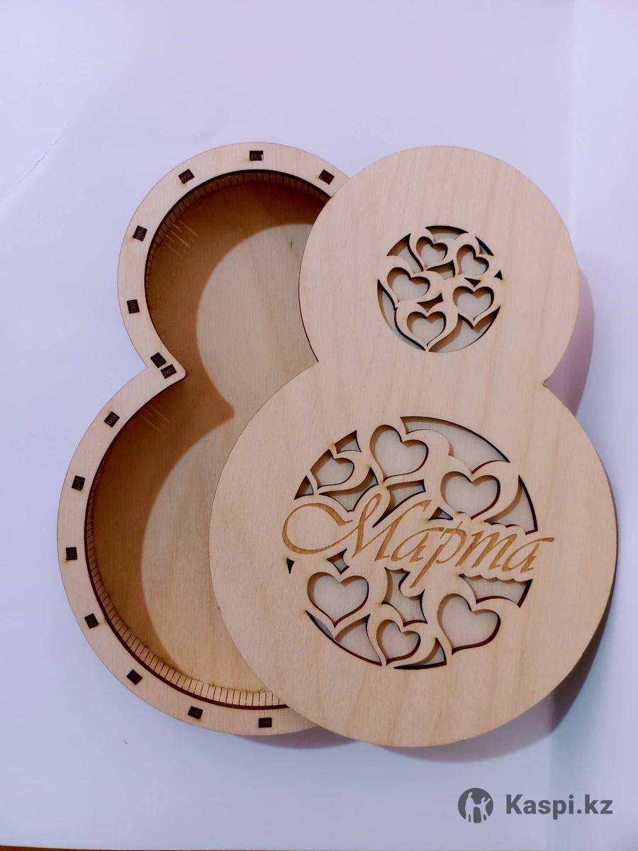 Подарочная коробка "8 Марта" в форме цифры "8". Размер 19х13х2 см. Материал - фанера берёзовая. Оптом и в розницу.