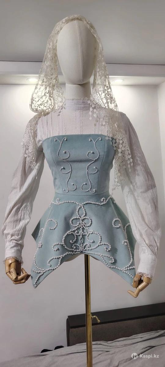 Корсет с баской расшитый в ручную бусинами из велюра на подкладке. Размер от 40-42.Сзади шнуровка. Рельефы идеально повторяют изгибы тела. Очень красиво на платье, блузку с юбкой или брюками. Возможно сшить такой же из другой ткани(темно синяя джинса или велюр другого цвета) на заказ. Можно использовать как повседневный аксессуар или также расшить бисером или пайетками на ваше усмотрение. О деталях можно написать в . Шью сама. Иссык
