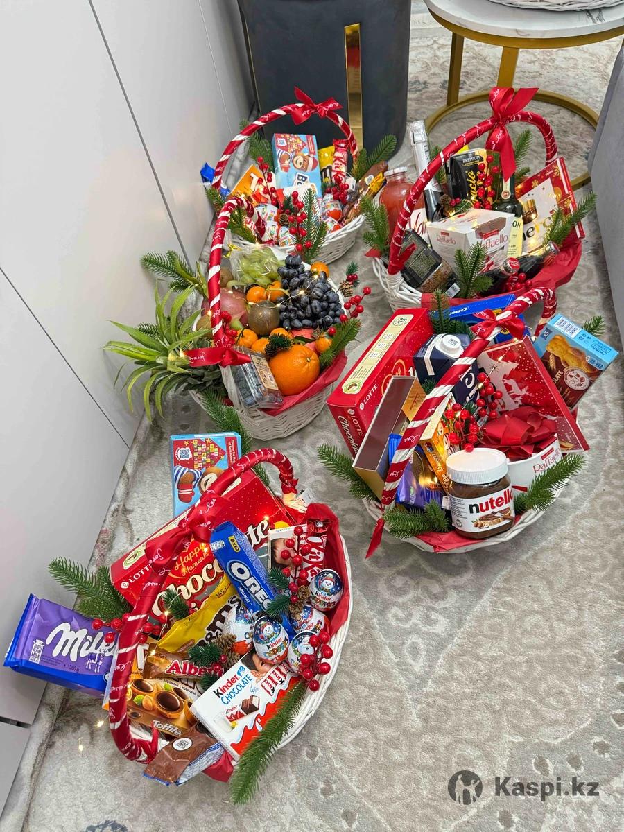 Новогодние корзины, фруктовые корзины, сладкие корзины