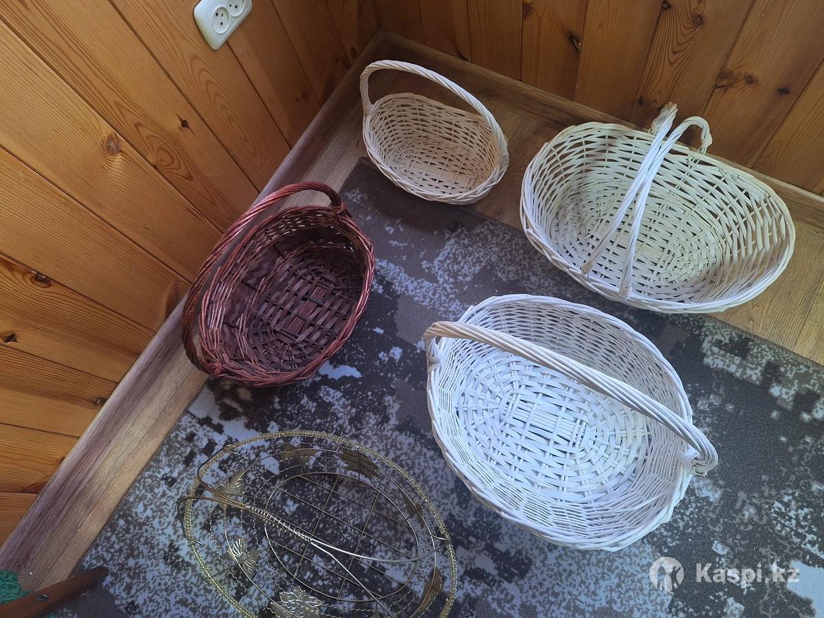 Есть 6 таких корзин: 1) Две маленькие белого цвета, 2) Средняя коричневого цвета, 3) Средняя алюминиевая золотистого цвета, 4) Большая с одной ручкой и 5)большая с двумя ручками корзины белого цвета Можно туда класть и сладости и фрукты и ягоды для подарка Стоят они : 1) по 2000 тг за шт 2) 2500 тг 3) 3000 тг 4) 3500 тг 5) 3700 тг Корзины в хорошем состоянии можно сказать новые