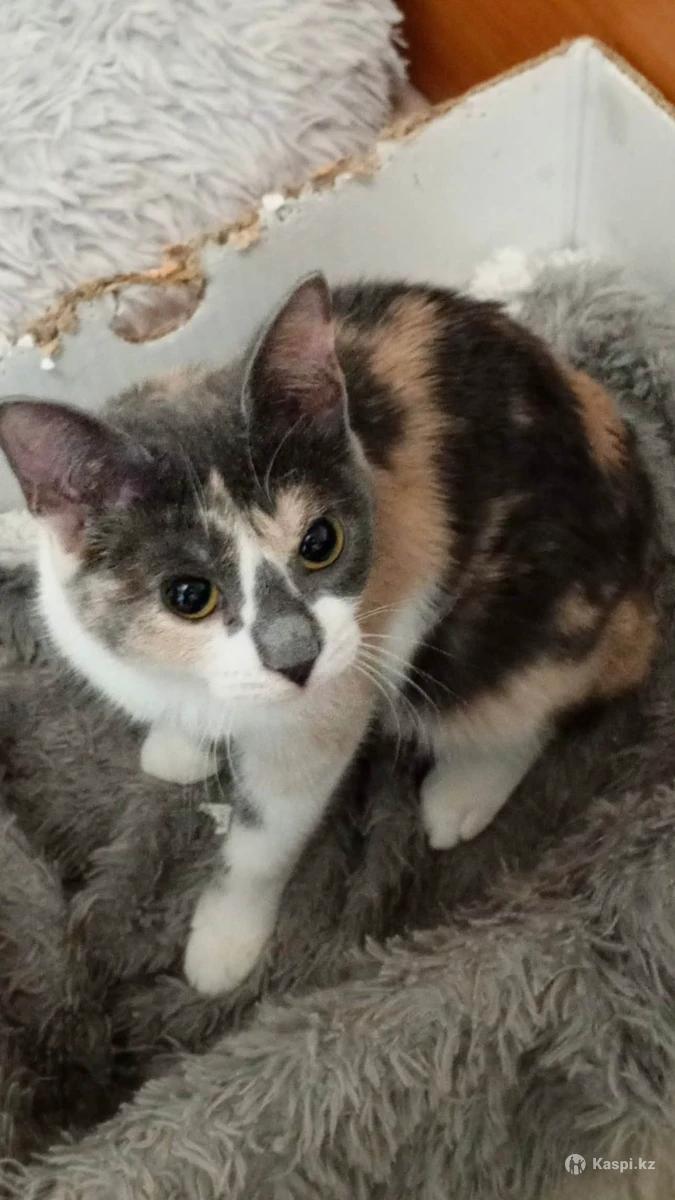 Кошечка Майя, 4,5 месяца. Очень спокойная, в лоток ходит. Шерсть бархатная, размером небольшая. Про меню, по телефону.