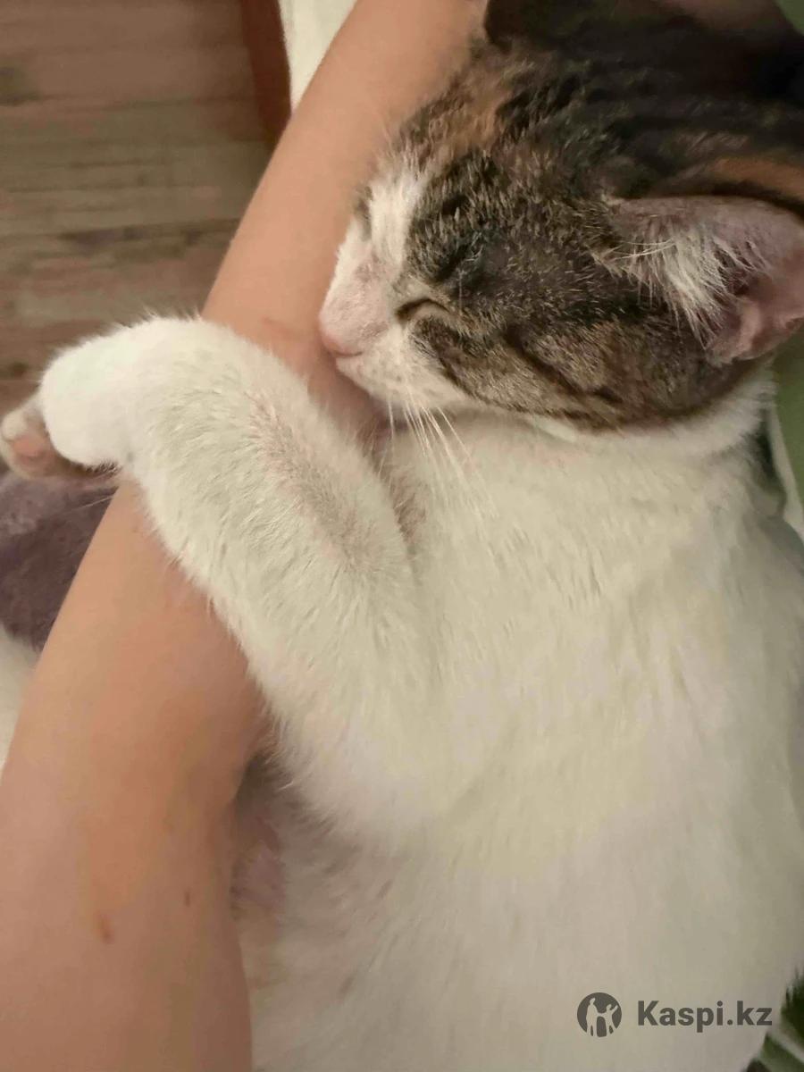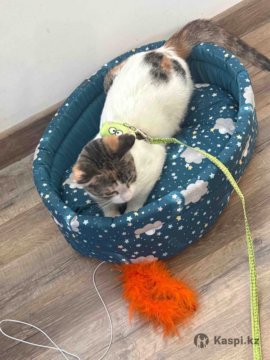 Такова ситуация: в субботу ко мне домой пришла кошечка, видно что домашняя. Хозяева не нашлись. Мы были у ветеринара, ей 7 месяцев, нет блох, нет лишая, здоровая кошечка. К лотку приучена, все для жизни ей приобрела, но оставить у себя не могу. Так как дома болеющий человек и попугай. Она живет в отдельной комнате, но научилась открывать двери. Ищу для нее котородителей🥹 Отдам: лежанку, 2 игрушки, лоток с наполнителем, контейнеры для еды, шампунь, шлейку, расческу, полотенце ее личное, корм. Очень контактная, нежная, игривая Г. Алматы, нашлась в районе Гоголя Байтурсынова.