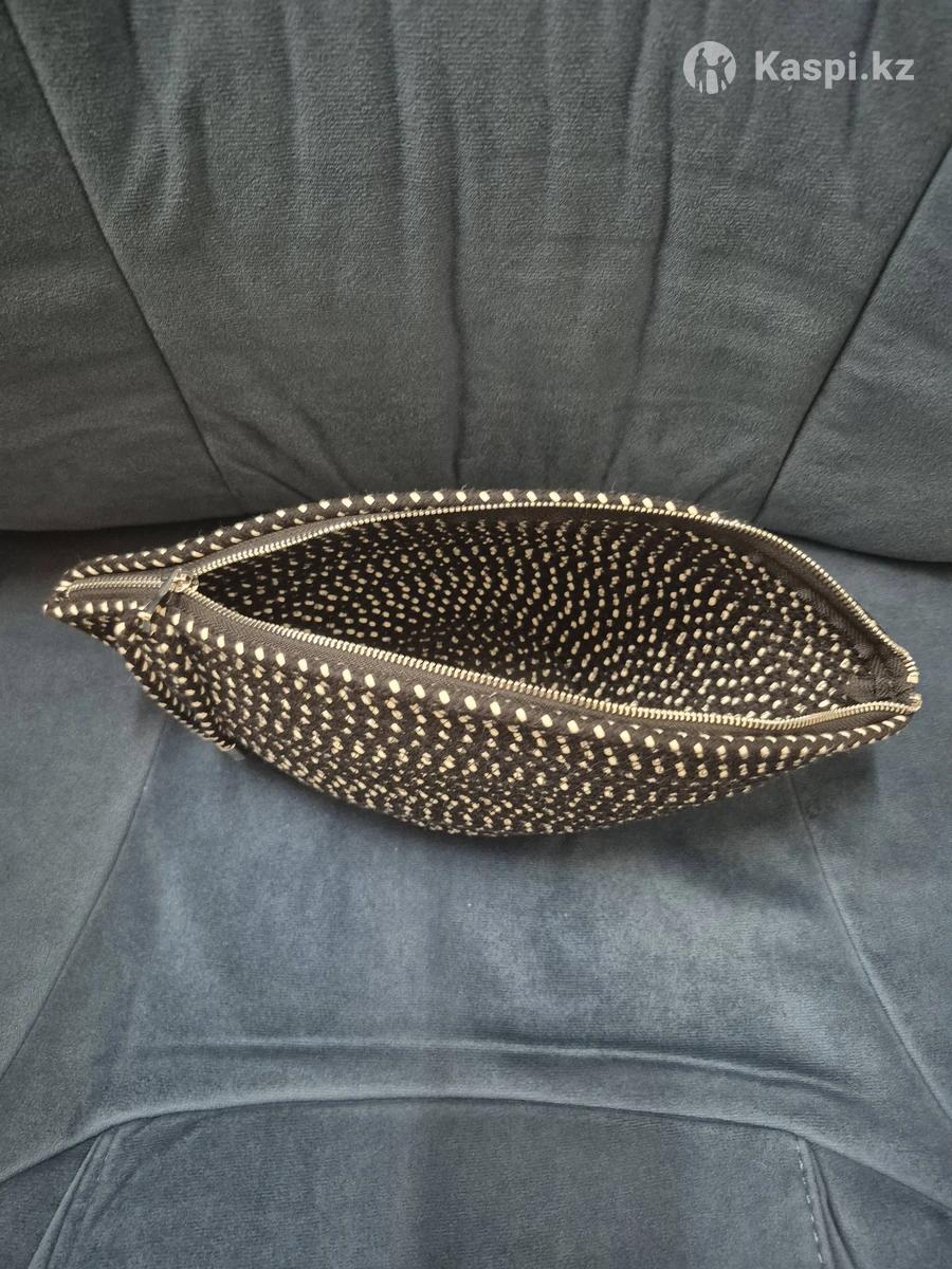 Косметичка - сумочка ручной работы в технике зиг-заг. Цвет черно-белый. На замке. Диаметр по низу 10 см. Высота 14см. Длина по верху 32см.