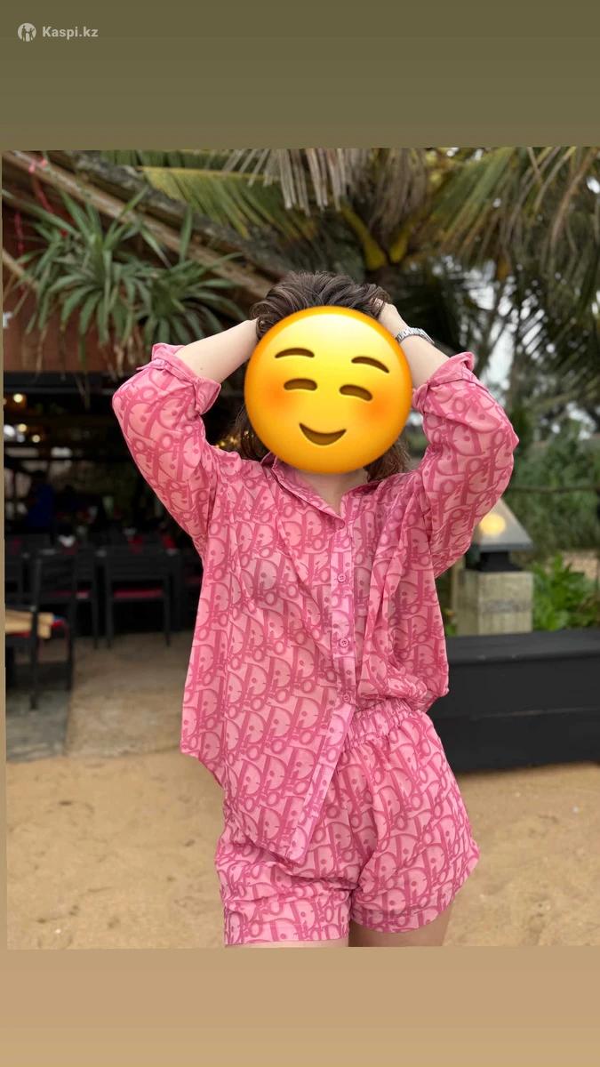 Костюм от Диор, носился пару раз, в идеальном состоянии, материал легкий, яркий цвет, супер на отдых и на лето. Верх М, шорты С но на резинке тянутся.