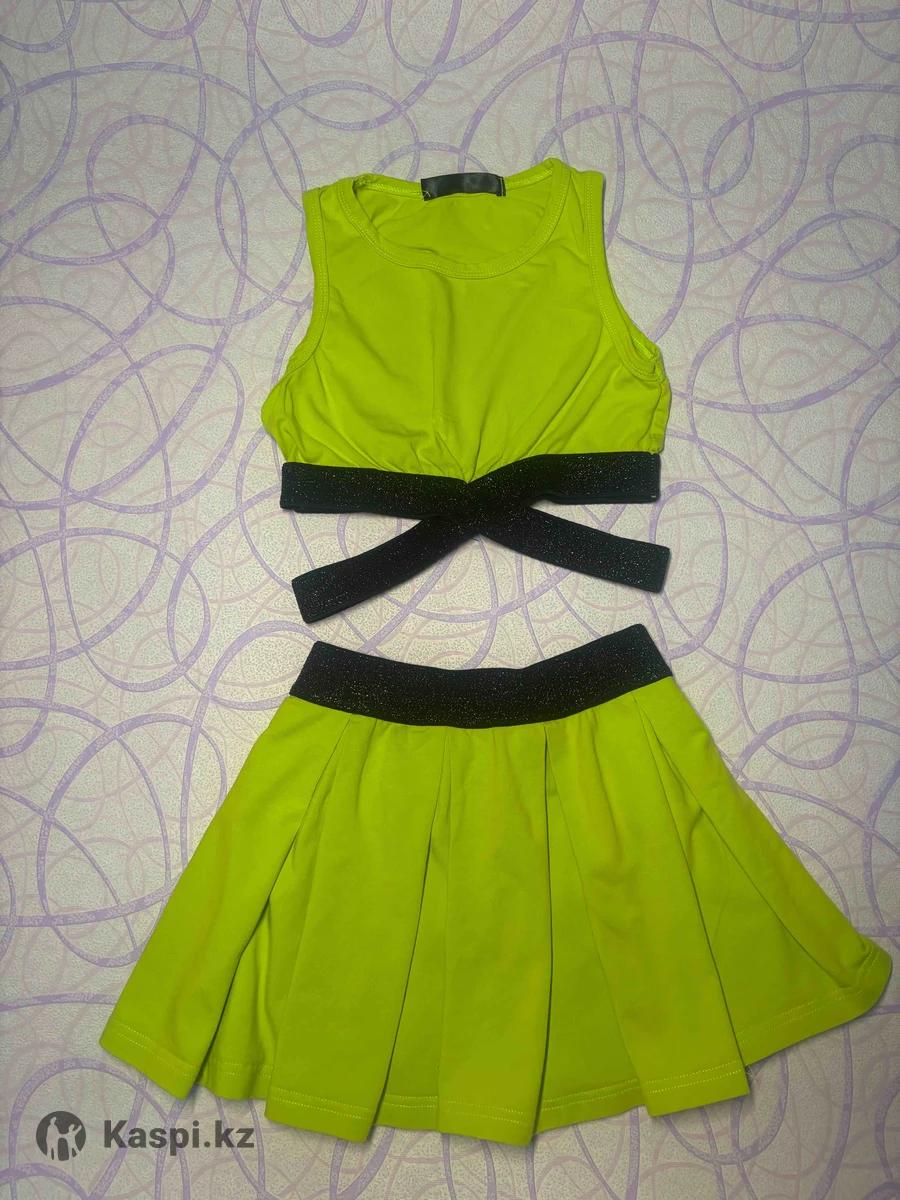 Костюм для девочки, можно просто летом носить. Юбка-шорты и топик. Можно использовать для черлидинга, выступлений, танцев. Ростовка 140-146