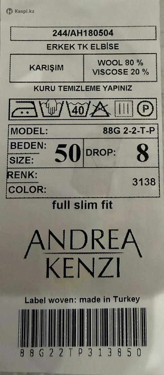 Костюм классический мужской в отличном состоянии. Размер 50-52, рост 8 (185-190 см.). Страна производства:Турция.