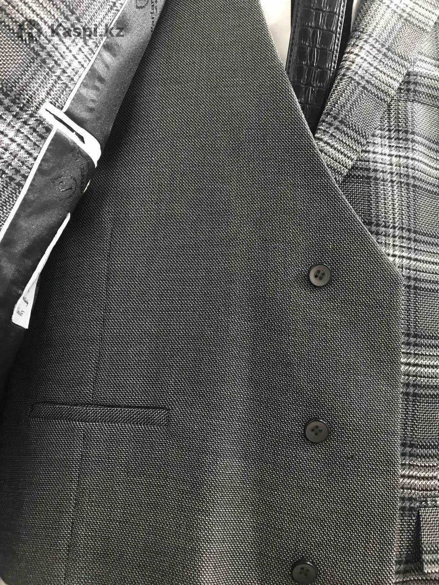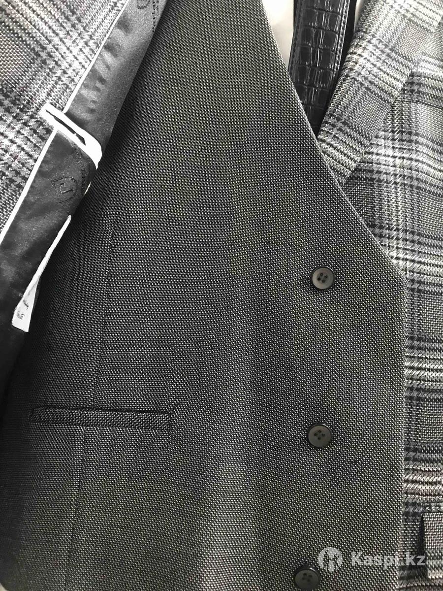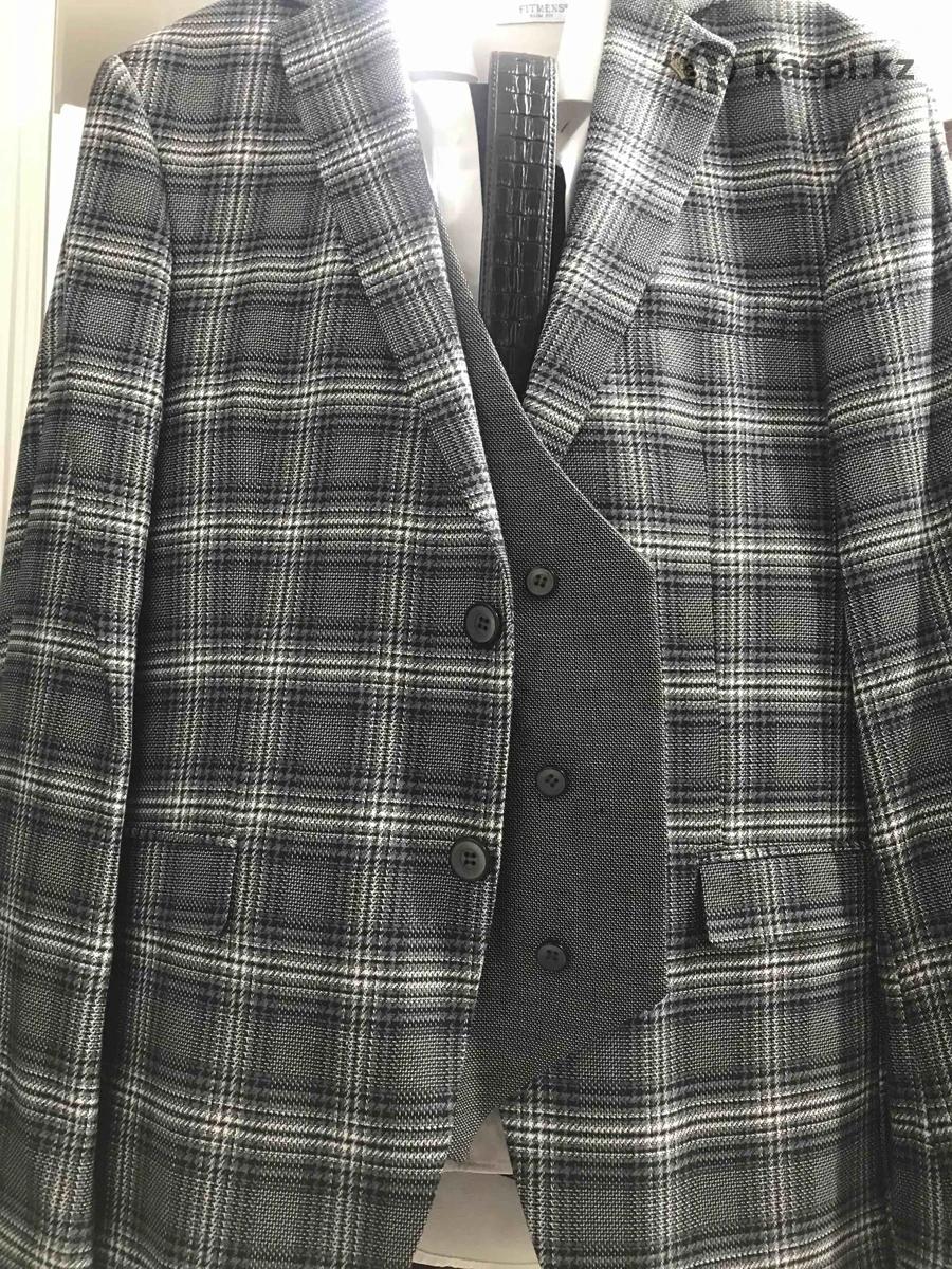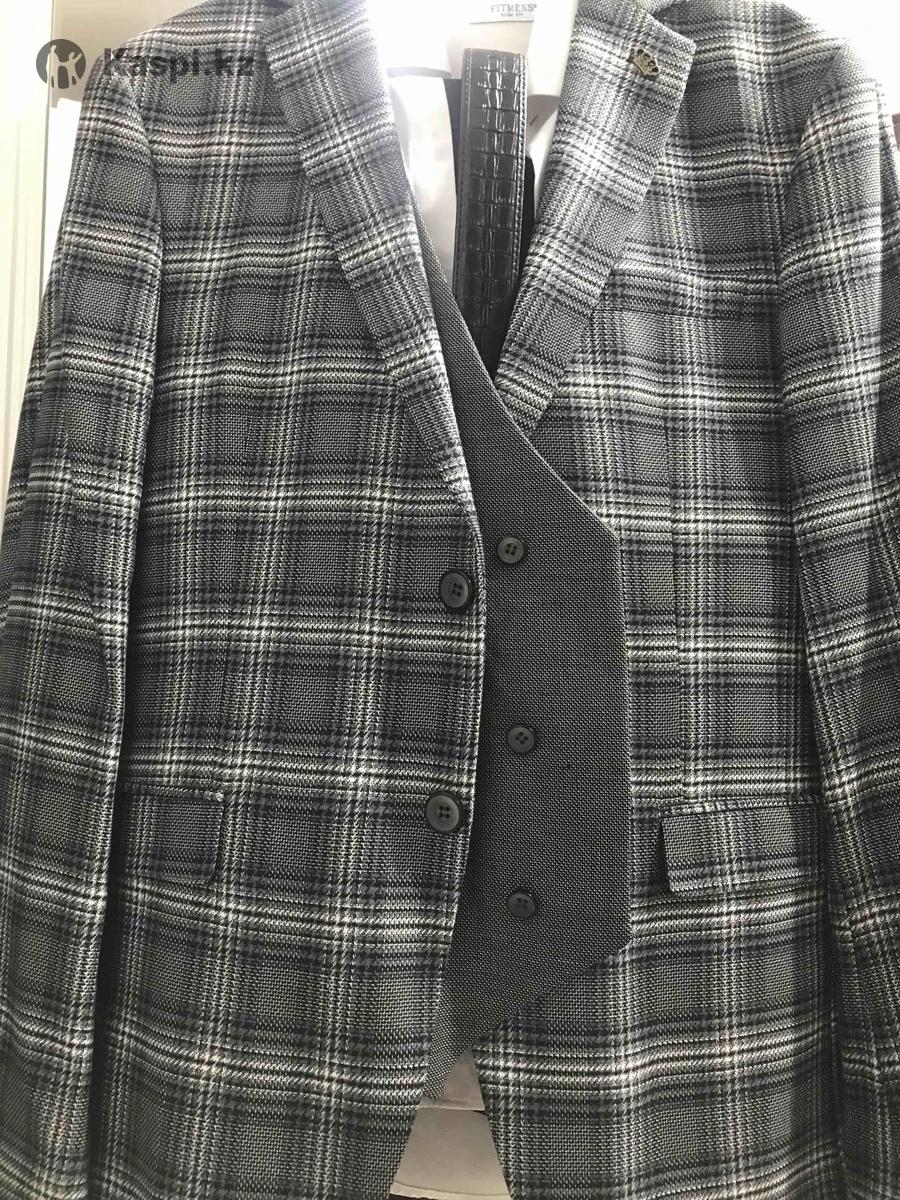 Новый костюм в комплекте Костюм,безрукавка,рубашка,брюки,галстук,в подарок ремень. Покупали в Адеме,за 150.000 тыс фирма Parlament. Производство Италия.можно посмотреть на Толе Би Жарокова, одел один раз на свадьбу. Новая в чехле стоит. Маленький стал. Размер М