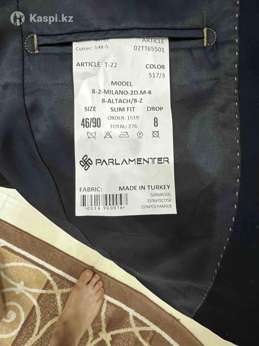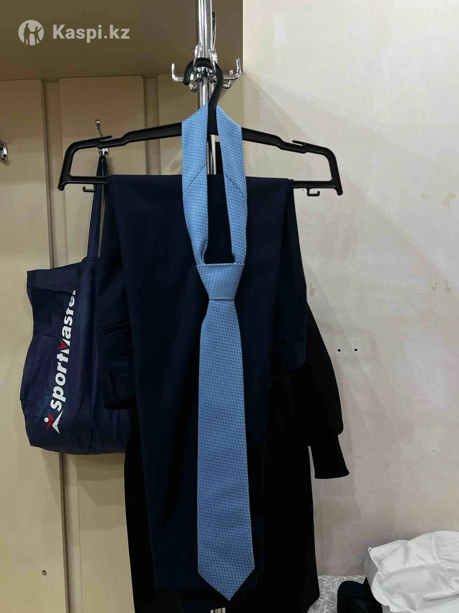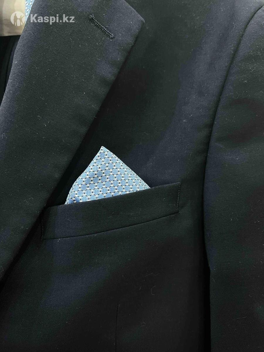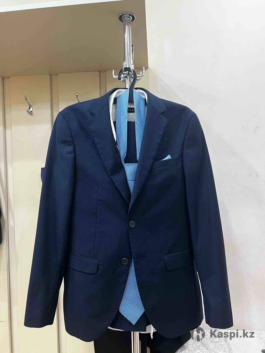 Костюм почти новый за 25000 тг. Размер: 46. 2 раза одевали.