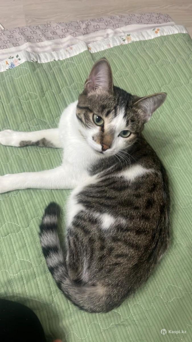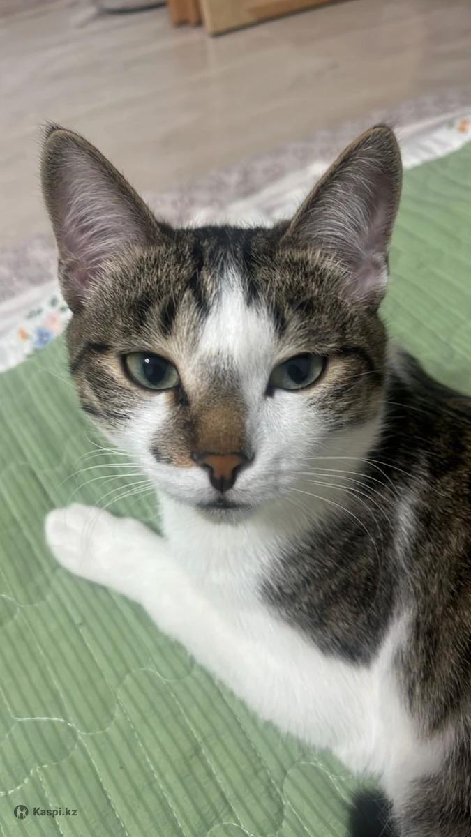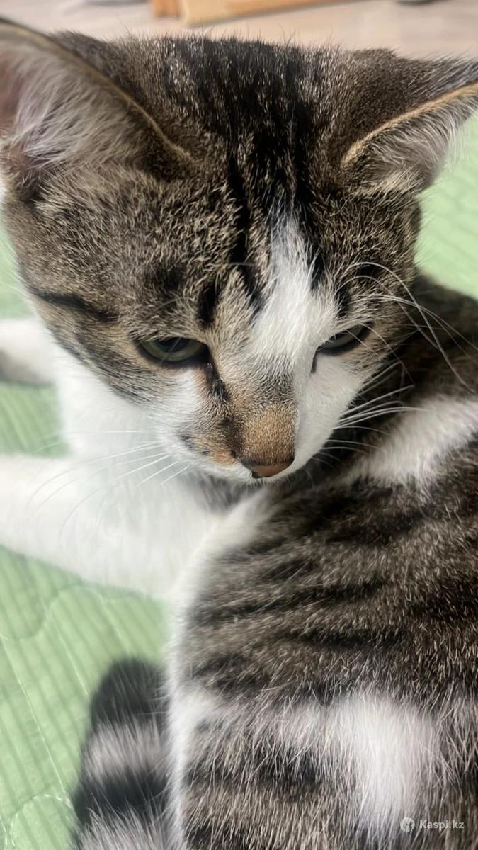 Кот примерно год и пару месяцев, очень ухоженный и чистый, тихий, не сильно тактильный, очень игривый, любит поспать, покушать, любит лазер, умеет ходить в горшок