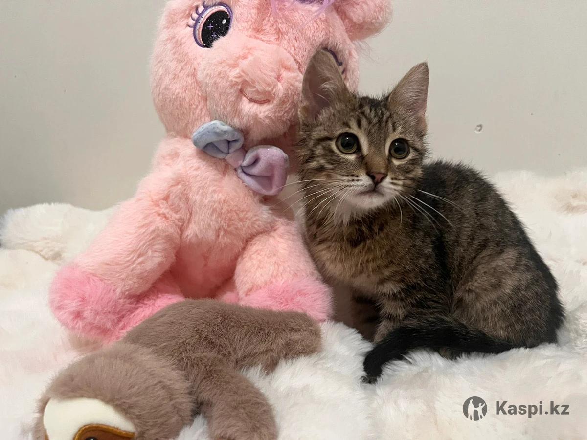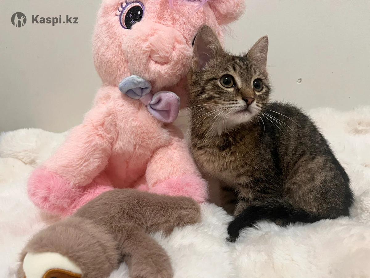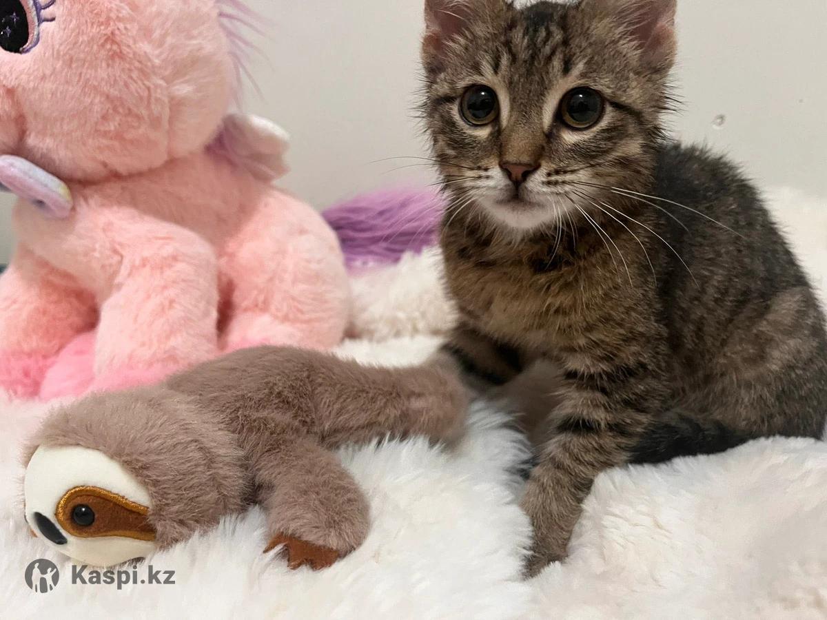 Котенок 3-4 месяцев. кажется даже меньше. Мальчик. тигровый окрас. ищем дом малышу. Очень спокойный и милый. Любит людей.