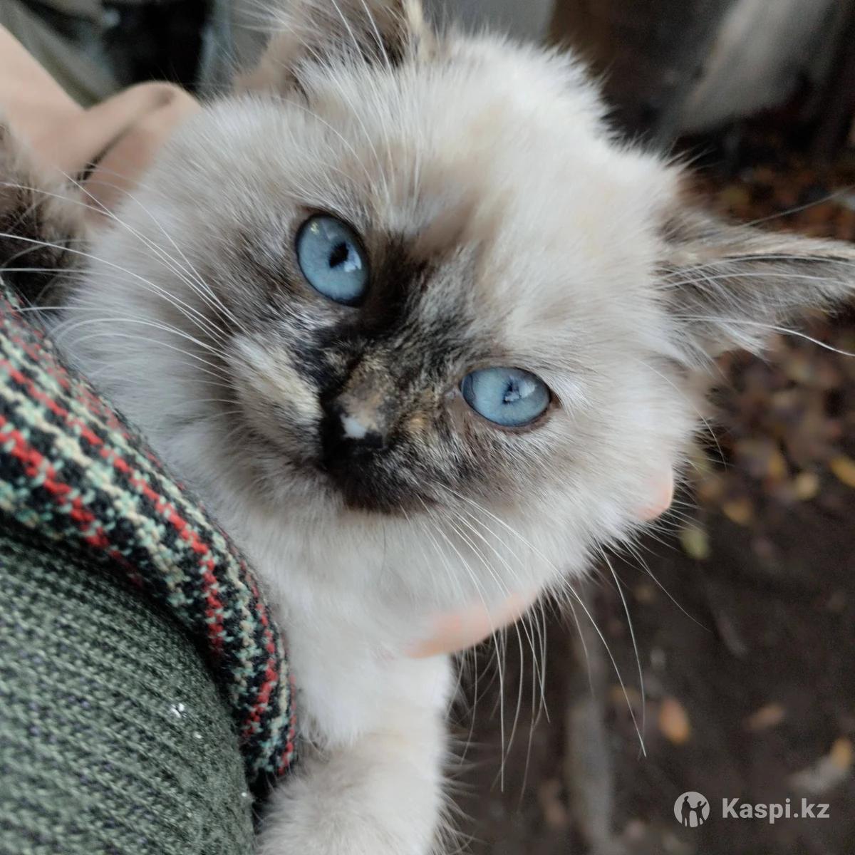 Котенок девочка возраст 3 месяца осталась одна ярко голубые глаза. Приученная к лотку. Шерсть мягкая пушистая .