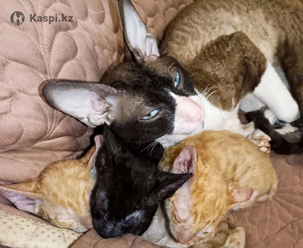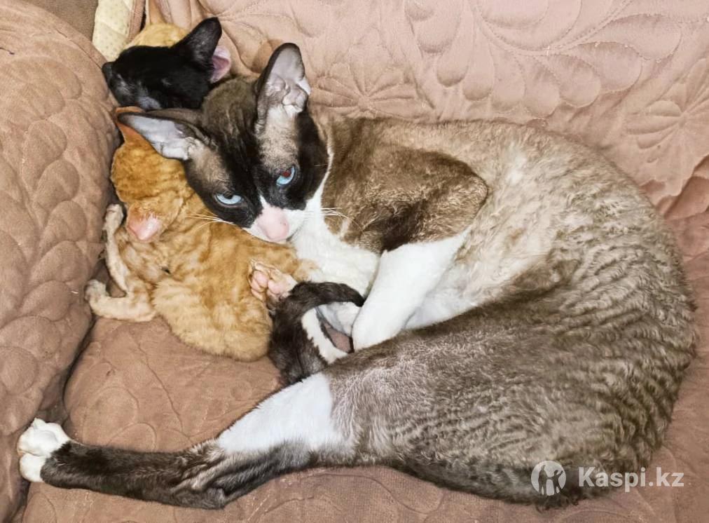 Элитные котята породы корниш-рекс (кудрявая короткошерстная). Родители чистокровные, котята с документами. Папа - кот привезенный с Московского питомника с голубыми глазами! Три котенка в помете. Черная девочка и два мальчика рыже-белые. Мальчики под кастрацию, одно ухо кончик загнут назад, генетика, поэтому не для разведения, скидка будет. Порода очень ласковая и ручная. Корниш-рексы удивительно грациозны, любопытны и подвижны. Представителей этой породы отличает особая экзотическая внешность и высокий интеллект. Корниш-рекс преданны и верны своему хозяину, с удовольствием проведут весь вечер на коленях владельца, мурлыча и ласкаясь, порода идеально подходит для пожилых людей. С другой стороны корниши удивительно активны и игривы. Они легко уживаются с другими животными благодаря своему дружелюбию и общительности. Большие любители поиграть, эти кошки — отличный вариант для семей с детьми. При этом замечено, что даже в момент опасности корниш не будет нападать, поэтому они вряд ли поцарапают или укусят ребенка. На одном из фото папа котят. Если не отвечаю по телефону напишите на , перезвоню.