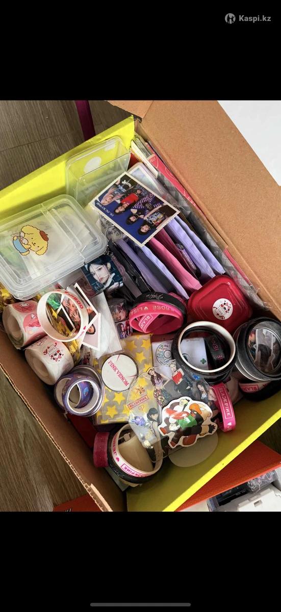 Kpop Стикеры Постеры Браслеты Карточки много чего 2 коробки Что-то брали на продажу, участвовали в Ярмарке. Что-то есть свое б/у, но состояние хорошее. Отдаю все за 10000тг