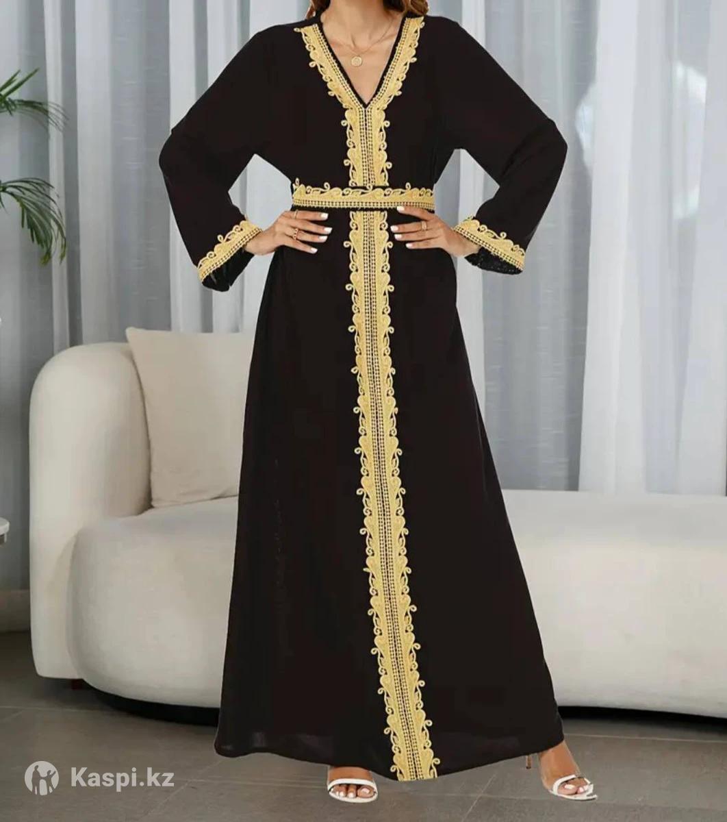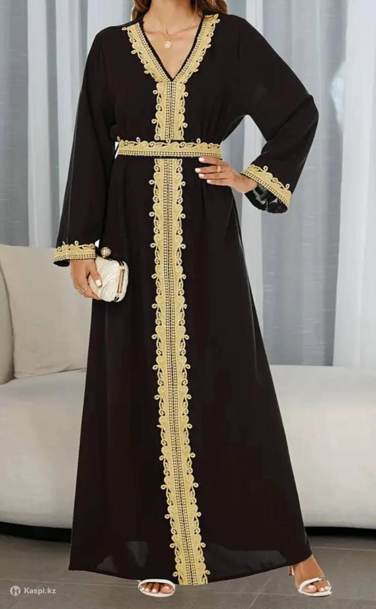 Платье в единственном экземпляре! Насыщенный черный с золотой вышивкой. Китай, полиэстер.