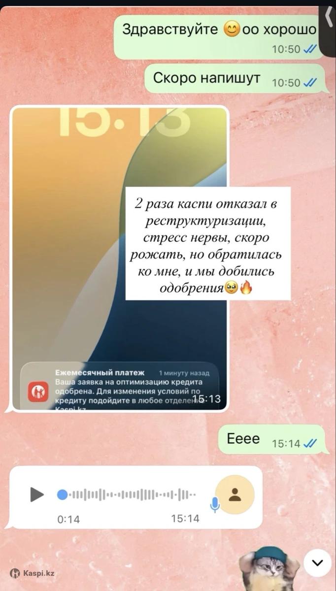 Кредитный специалист Снятие арестов Получение графиков мфо/банк/кол.агентство Оптимизация Каспи Отсрочка Сопровождение и поддержка клиента до конца