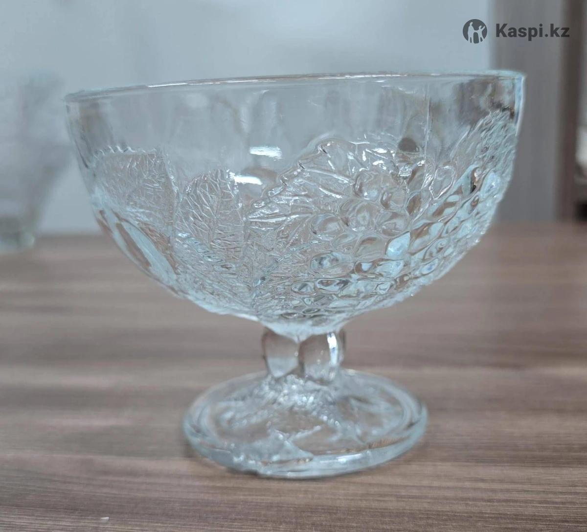 Креманка стеклянная Pasabahce С рельефным рисунком фруктов и листьев. Идеальна для десертов и мороженого. Цена: 150 тг