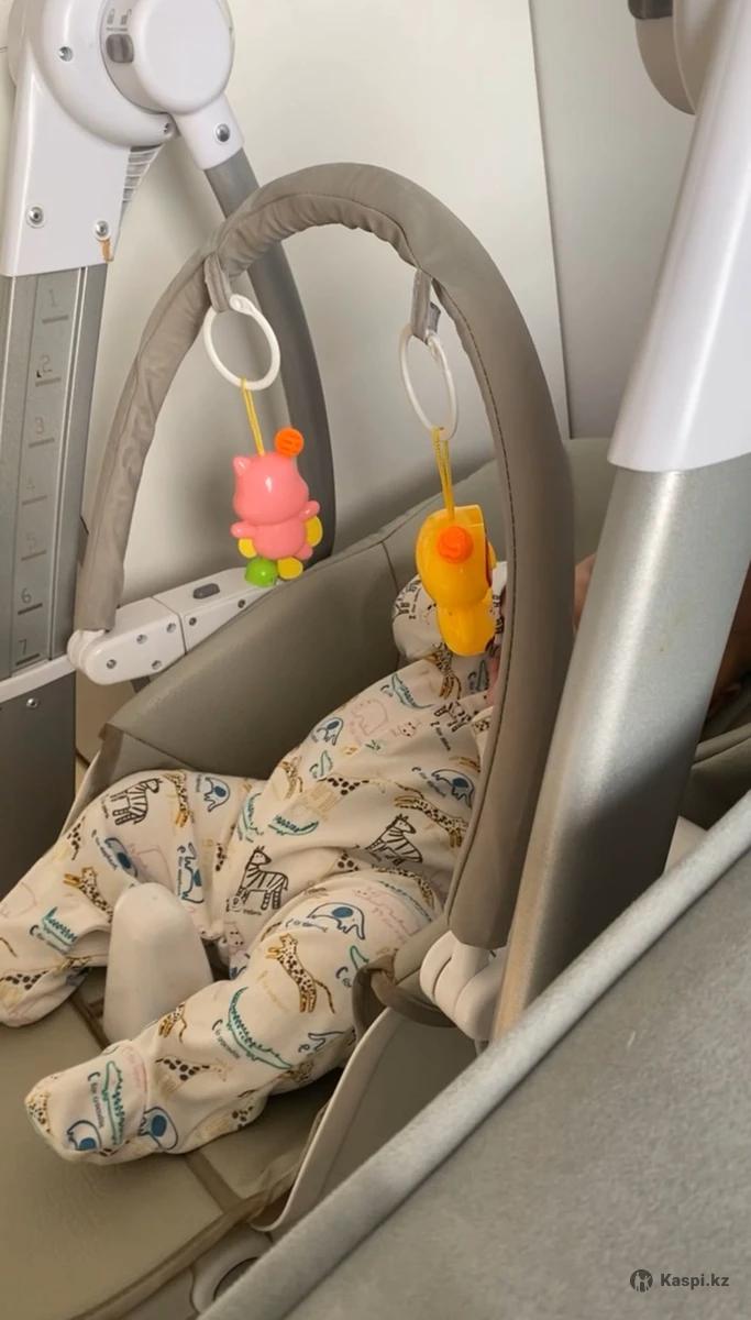 Шезлонг (кресло-качалка), стульчик для кормления. Состояние хорошее, так как использовали очень долго. Для маленьких малышей есть несколько режимов укачивания. Высота регулируется по своему желанию, положения наклона спинки так же регулируется одним нажатием кнопки. Сбоку есть панель со встроенными мелодиями (шум природы, птички, классика). Кресло работает от батареек. Сами покупали в киндервуде за 66тыс тенге. Отдаю за пол цены, без торга. В подарок отдам б/у комплект силиконовой посуды для кормления (слюнявчик, тарелка с разделителями в форме краба, миска для супа).
