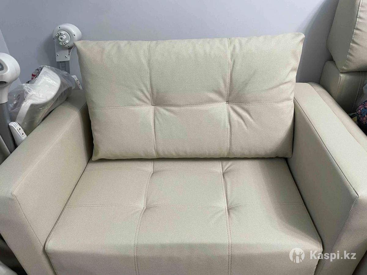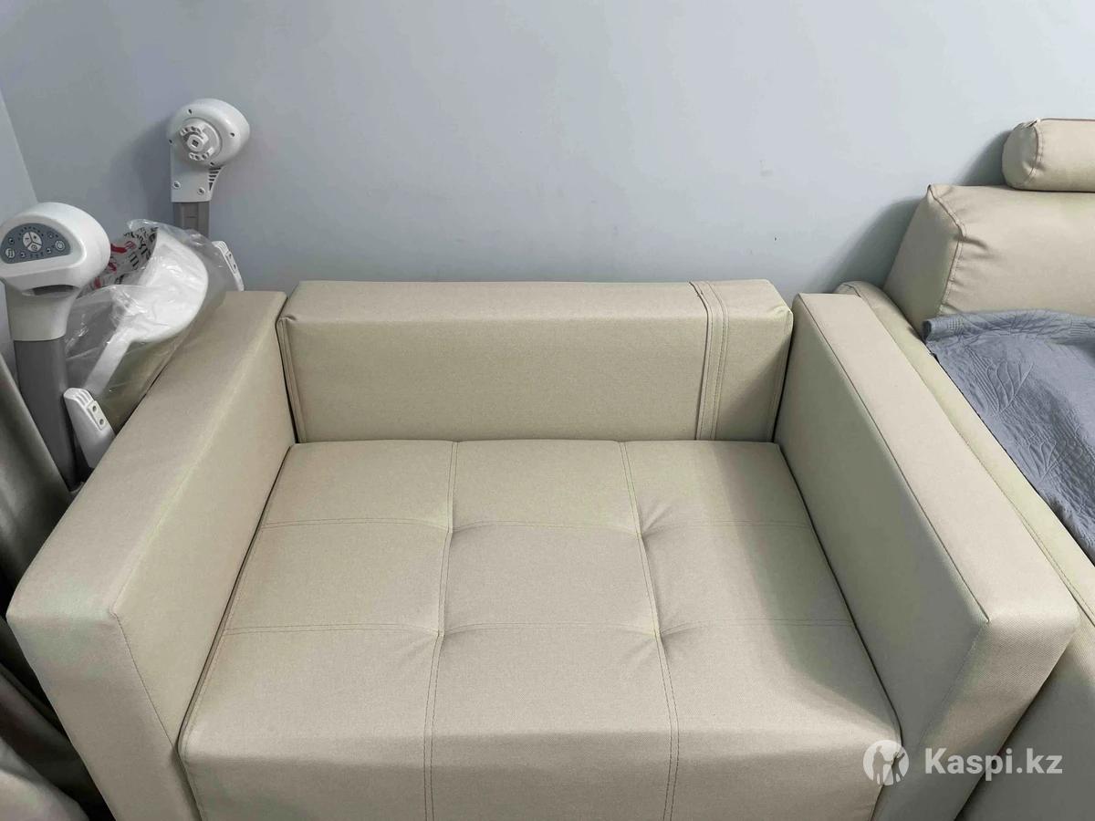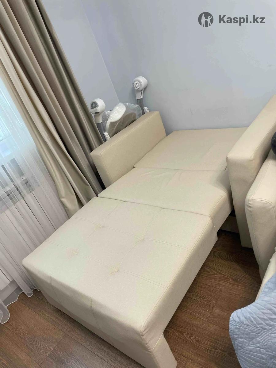 Кожазам очень качественный, светло-бежевый, спальное место: 170 см длина спального места 92 см ширина спального места с подлокотниками 120 см ширина Есть отсек для хранения вещей. В собранном глубина сидения 80 см. В идеальном состоянии. Реальному покупателю уместный торг. Самовывоз