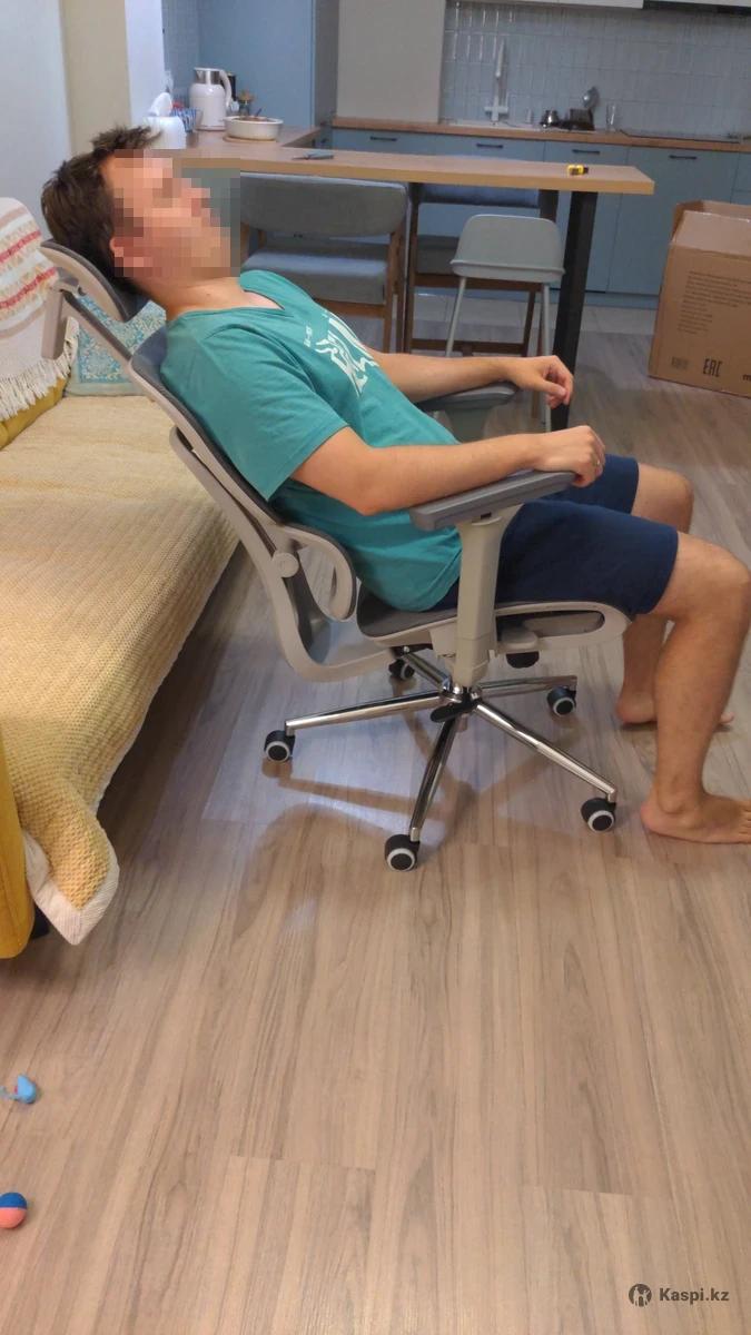 Абсолютно новое кресло, приобрел на озоне, но не подошло. Регулируемый подголовник, регулируемые подлокотники. Регулировка наклона. Большой наклон, можно спать. Поясничная поддержка тоже регулируемая