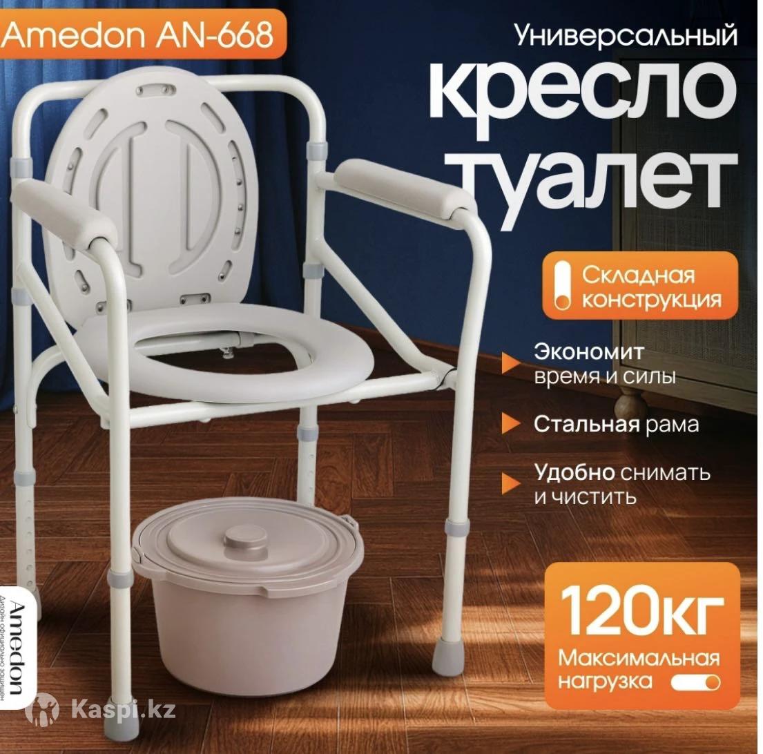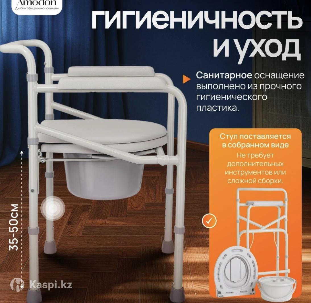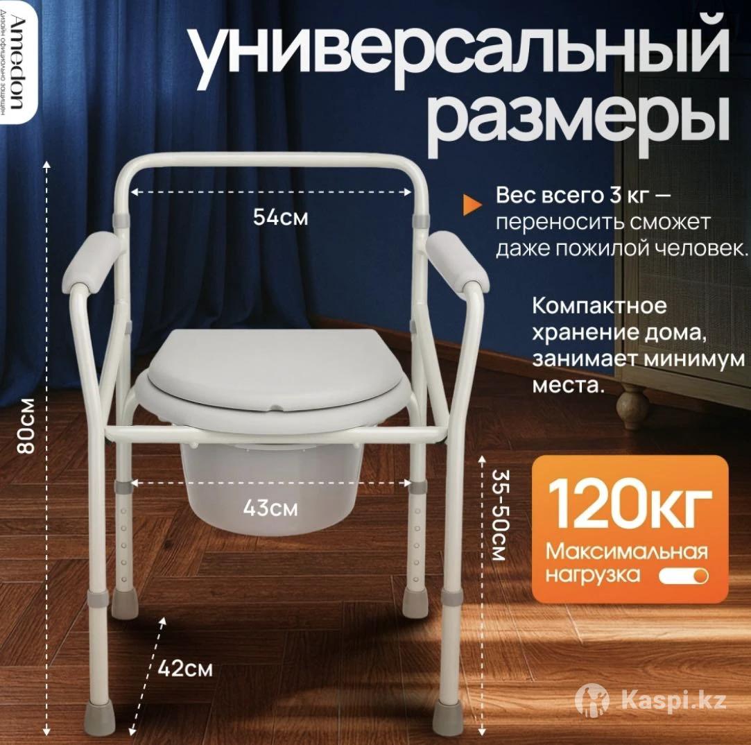 Кресло туалет с поручнями. Стул оснащен складной конструкцией и съемным санитарным оснащением. В пользовании не был, абсолютно новый, упакован в коробку. Находится в г. Костанай