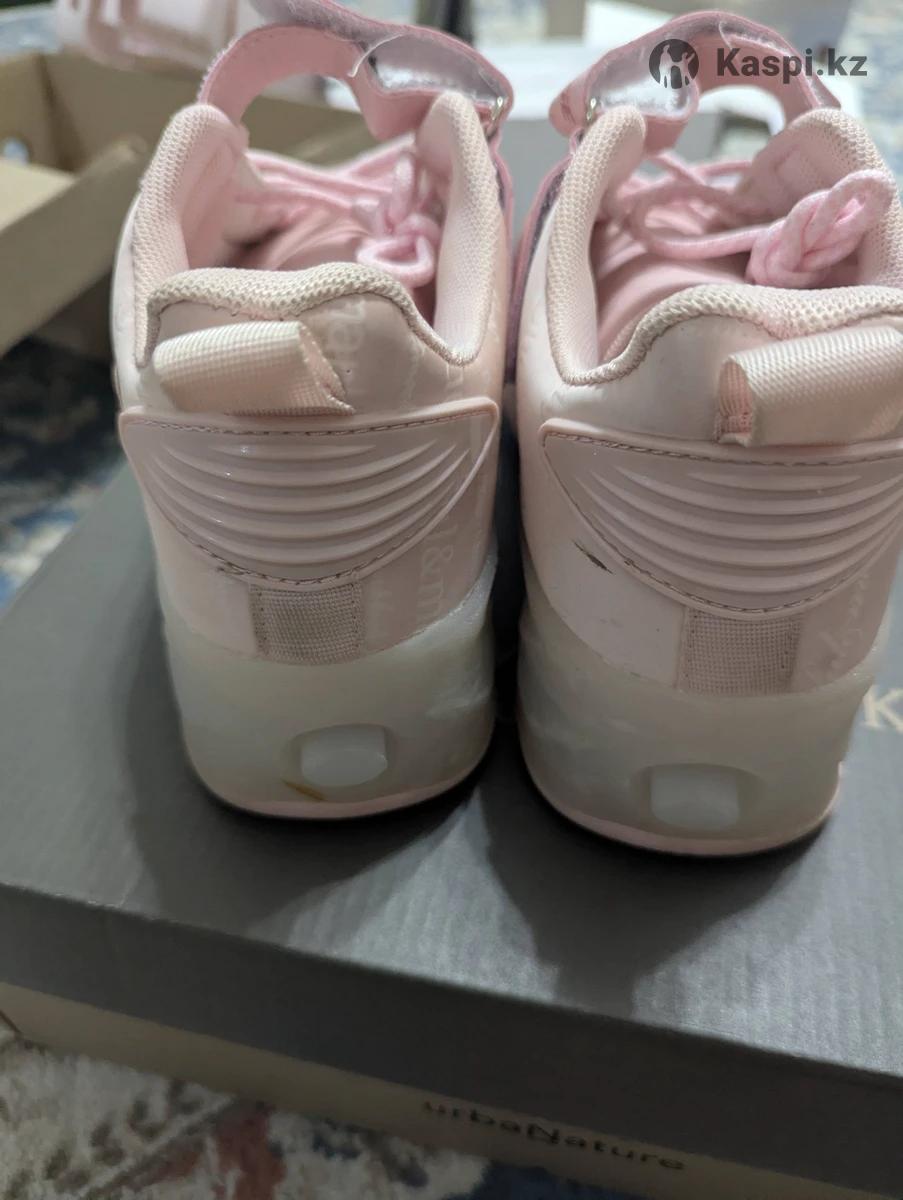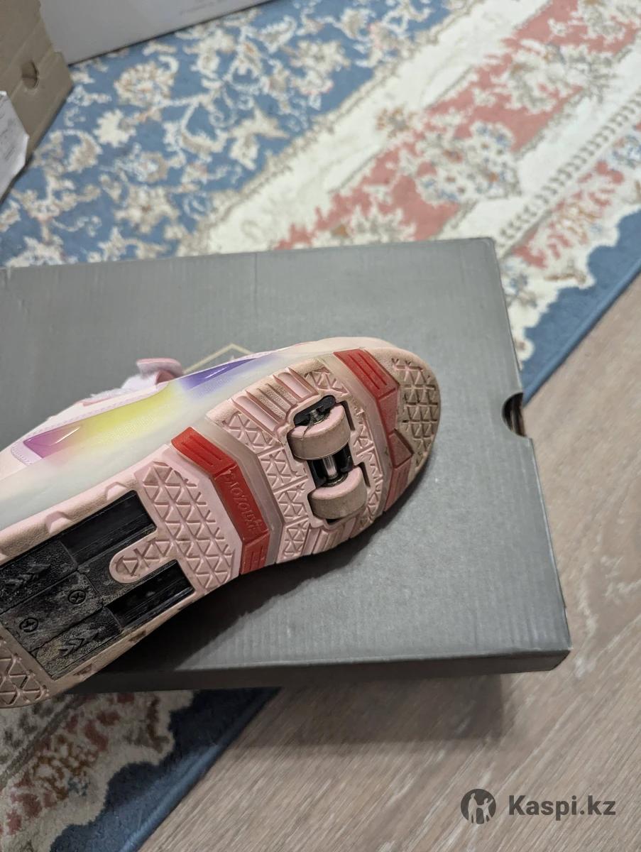 Кроссовки-ролики. Размер 36, нежно-розовый цвет. Идеальный вариант для активных прогулок, двухколесная модель, заднее колесо прячется в подошве, переднее съемное. Подсветка