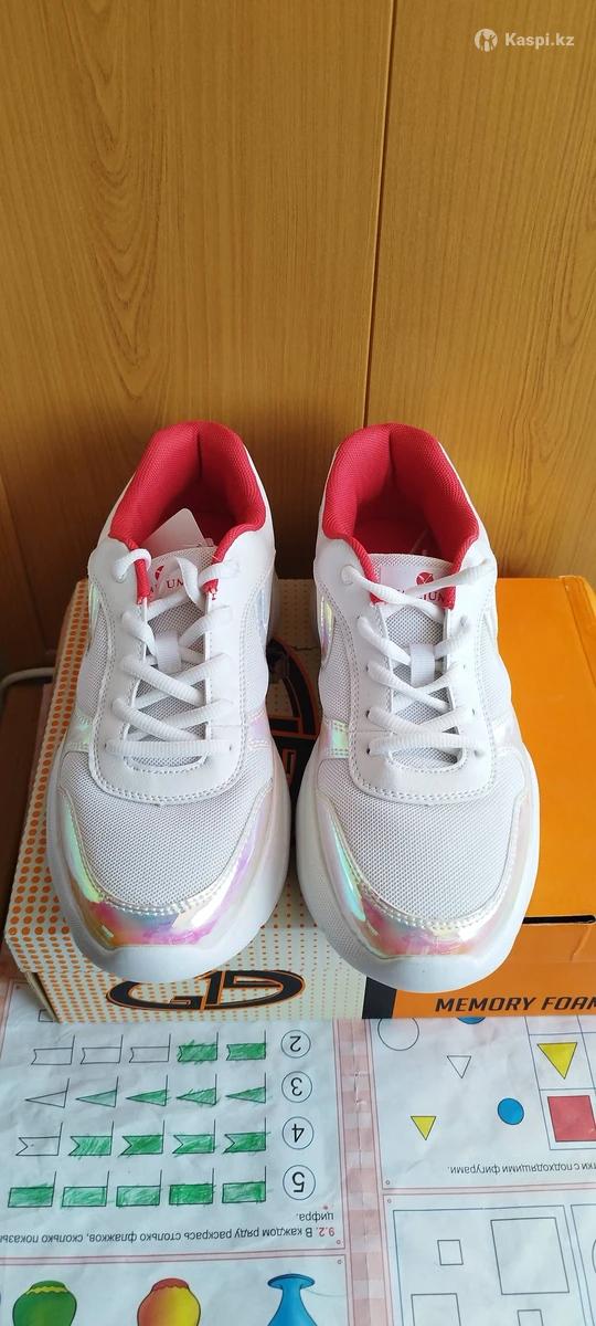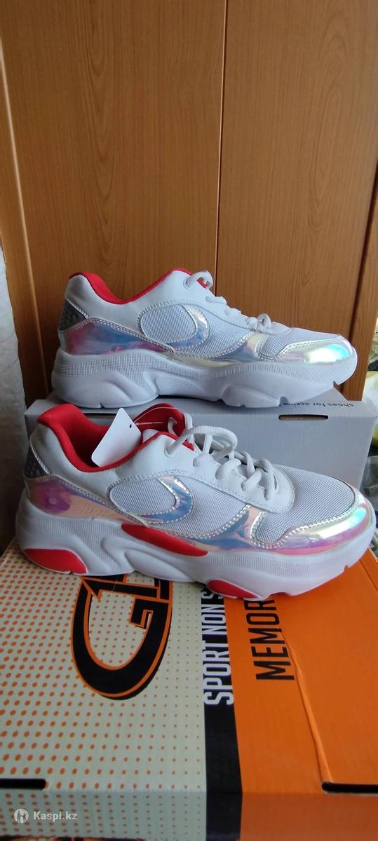 Новый кроссовки. Идут размер в размер. Белые , вставки красного цвета и серебристого цвета-переливпются на солнце. Актау 6 мкр