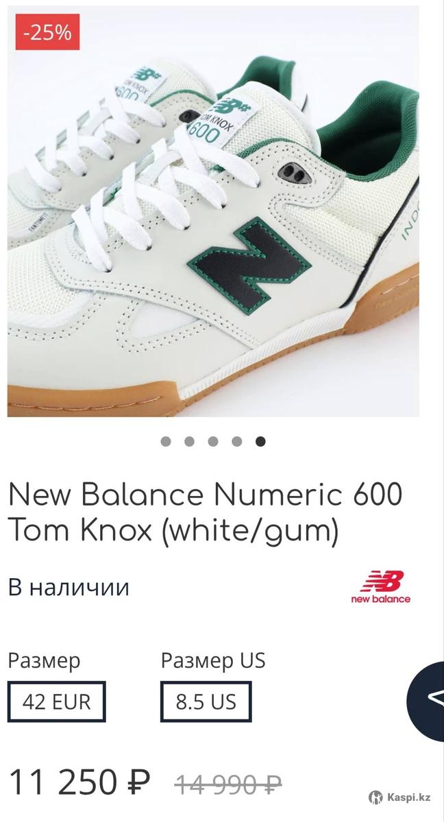 Скейт кеды от американского бренда New Balance. Про-модель Tom Knox 600. Состав: верх - кожа/текстиль, подошва - резина. Сделано в Индонезии. Купили в Германии, размер не подошел. Кажется маломерка и подойдет на 41 размер. Новый. ... New Balance америкалық брендінінен скейт-кеды. Tom Knox 600 про-моделі. Құрамы: үстіңгі бөлігі – былғары/тоқыма, табаны – резеңке. Индонезияда жасалған. Германияда сатып алдық, өлшемі сәйкес келмеді. Маломерка сияқты. 41 ші размерге келіп қалады. Жап-жаңа.