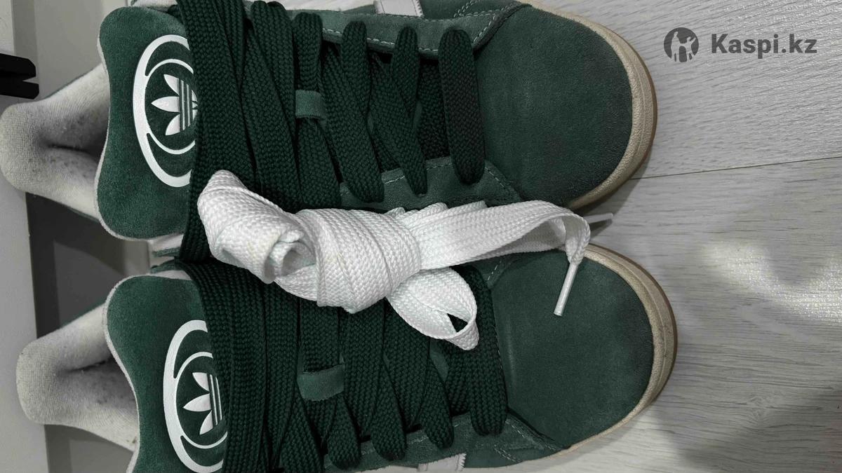 Продам оригинальные адидас кампус зеленого цвета Покупал в августе во Вьетнаме в магазин Адидас Размер 42 Дополнительно шнурки белого цвета Продаю по причине того что все таки ошибся с размером Одевал раз 6 максимум В максимолл в адидас цена таких 78 990 тнг