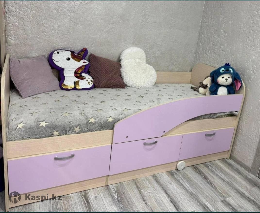 Подростковая кровать. Размер: 80×190 см. Материал: МДФ. Цвет: фиолетовый. Комплектация: матрас.
