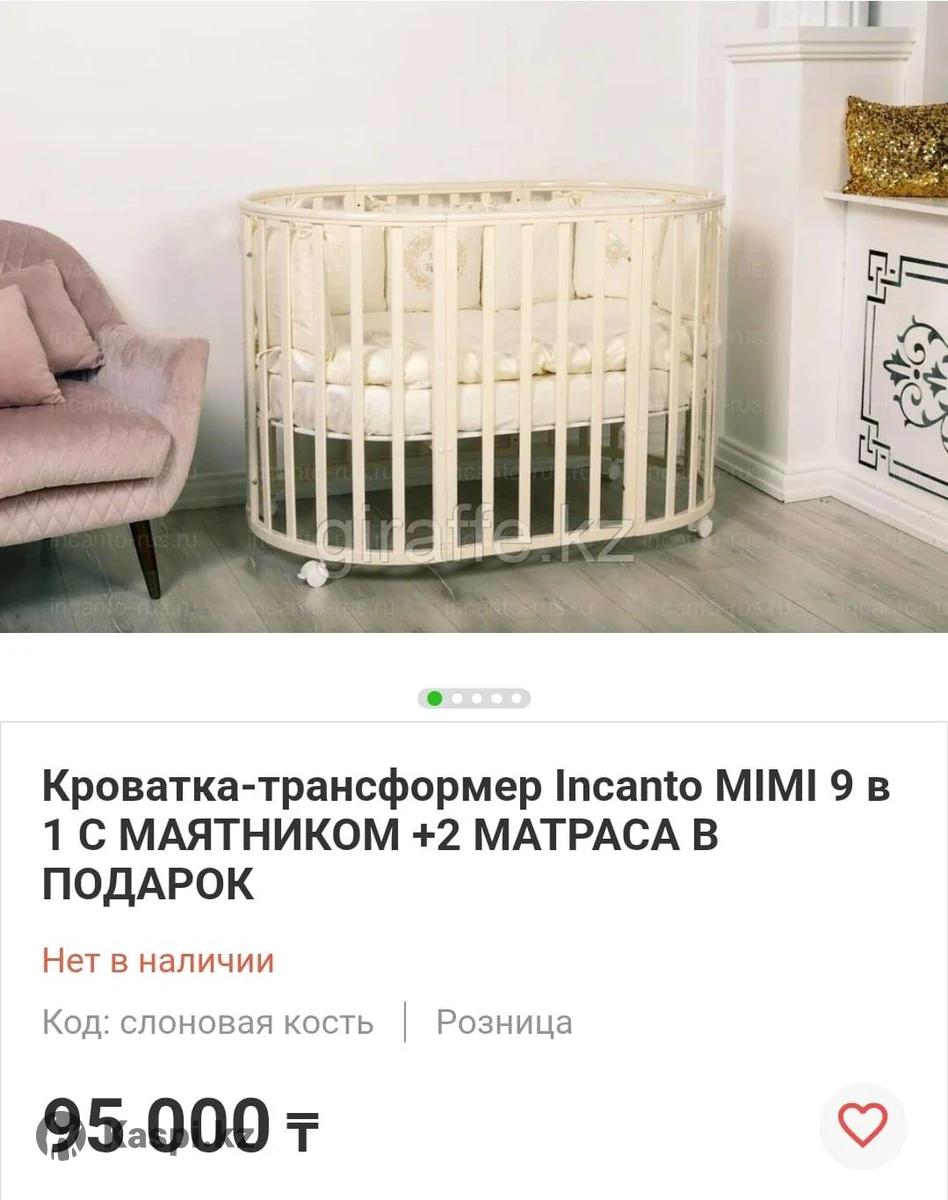 Б/у Кроватка- трансформер Incanto MIMI. 9 в 1 + 2 матраса Очень удобная и красивая детская кроватка. Описание Благодаря круглой форме, колёсикам и лёгкой, но прочной древесине, из которой изготовлена кроватка мама может делать перестановку мебели хоть каждый день. Такая модель считается наиболее безопасной - у неё отсутствуют острые углы, что сводит к минимуму риск травм. Верхние радиусы круглой и овальной формы оборудованы специальными силиконовыми накладками-грызунками, которые зщищают детские зубки. Форма кроватки способствует более быстрому развитию ребёнка, так как в ней открывается обзор на 360 градусов. По мере того, как растёт малыш, вместе с ним растёт и кроватка! Трансформации кроватки: 1.Колыбель для младенца размером 7575 см используется до шестимесячного возраста. 2.Далее корпус легко трансформируется в уютную овальную кроватку размером 12575 см. 3.В дневное время кроватка может служить игровым манежем для безопасных игр. 4.Есть пеленальный столик при помощи которого очень удобно переодевать кроху и проводить гигиенические процедуры. 5.Приставная кроватка-диванчик размером 12575 см. 6 и 7.Два комфортных стульчика и стол для подросшего малыша создадут комфортное место для настольных игр, рисования и подготовке к школе. 8.Прикроватная овальная кроватка предназначена от рождения до 18 месяцев. 9.Маленький игровой столик. При изготовлении кроватки используются натуральные экологичные материалы, высококачественные лаки и краски.