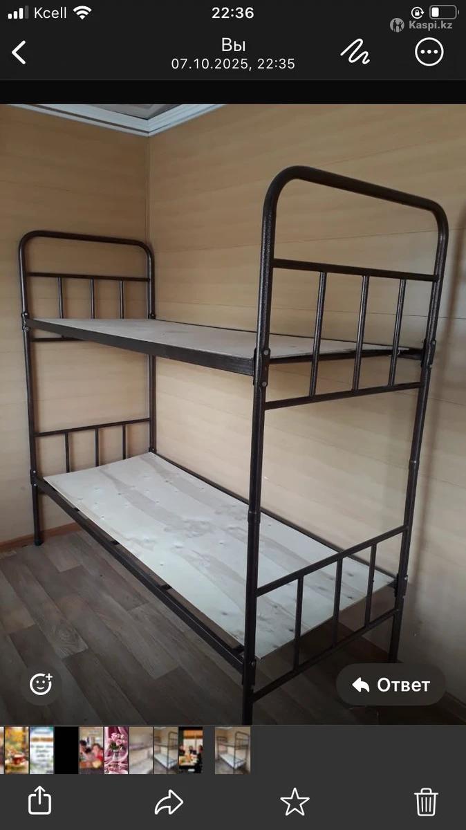 Кровать Армейская 2-ярусная в количестве трех шт. Собраны на высоком качестве, выдерживают до 120 кг. Разборная конструкция - удобно хранить и перевозить. Цена: 43000тг.- разумная, учитывая качество и состояние.