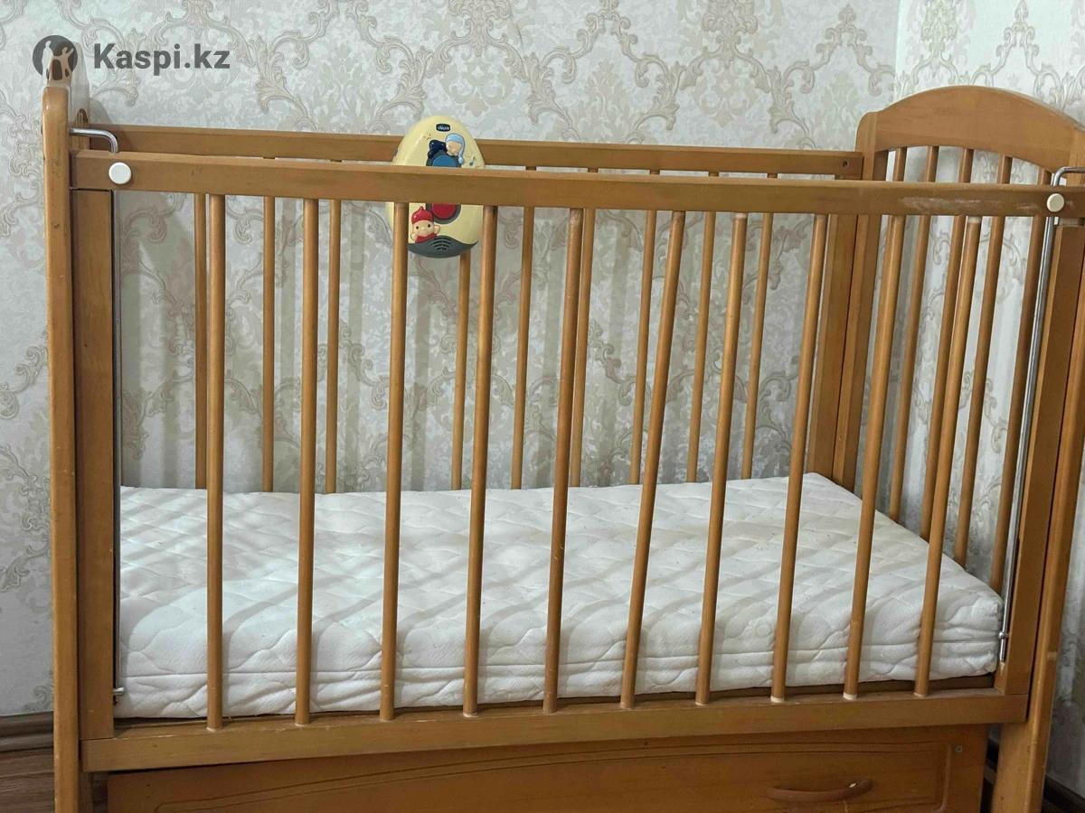 Деревянная кровать б/у хорошем состоянии с матрасом. На матрасе чехол съемный . 15000тг