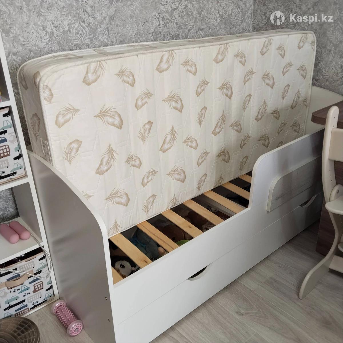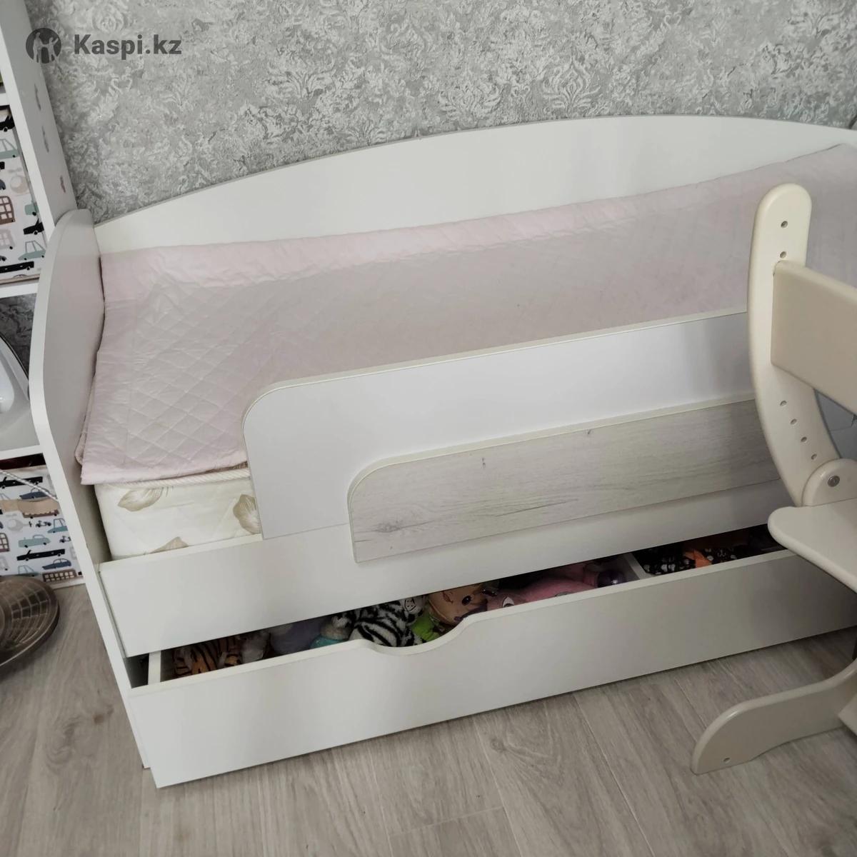 Кровать с выдвижными ящиками, цвет белый, съемная боковая стенка (бортик можно убрать) чтобы ребенок не выпал, ортопедическое основание, матрас Comfort 70х160. На Юго-Востоке. Самовывоз.