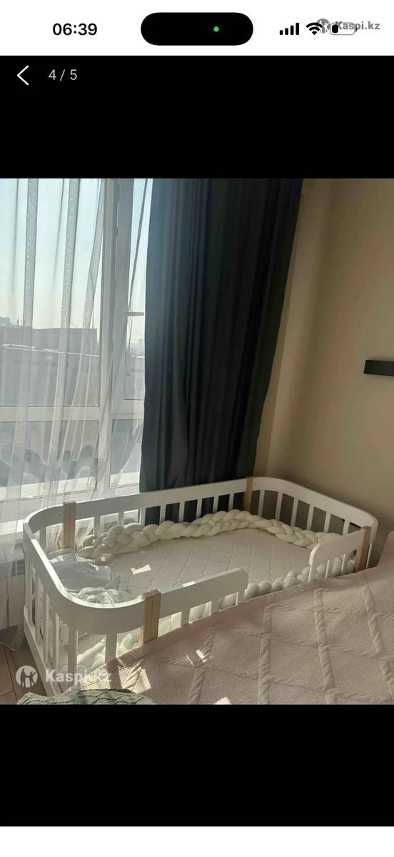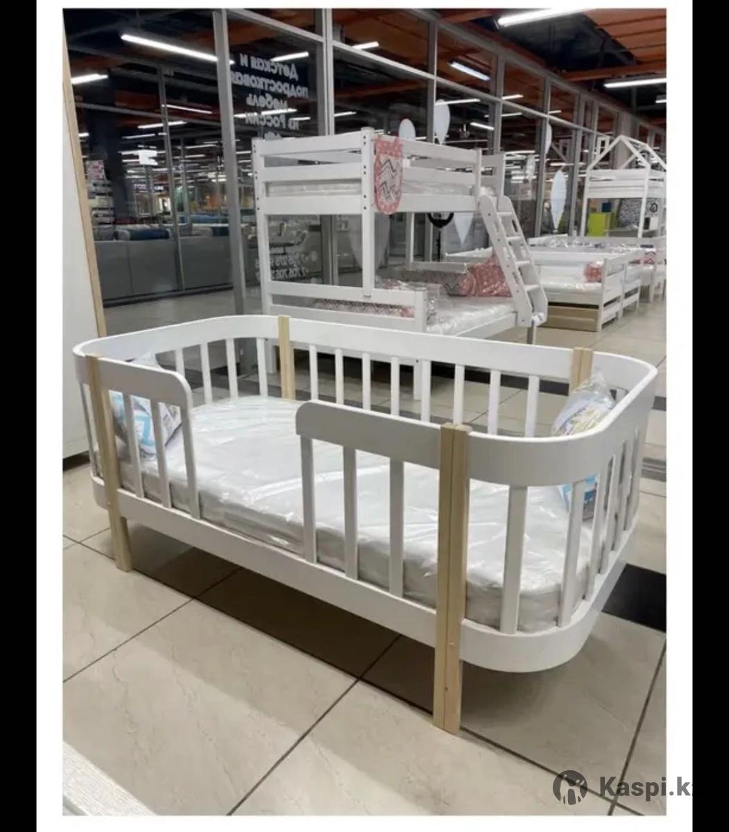 Детская кровать 160/80см с вертикальными рейками из Массива Березы от Aia home Габариты кровати: высота с бортами - 71 см Размер спального места: 160/80см Внешние размеры: 167/87см Производство: Россия Рекомендуется от 0 до 7-8 лет. Ортопедический матрас ( высота матраса 13см, беспружинный ,кокос, съемный чехол на замке) В отличном состоянии, ребенок привык спать с родителями, поэтому почти не пользовались. Покупали за 120 000 тенге, продам за 75 000 тенге +водонепроницаемый простынь