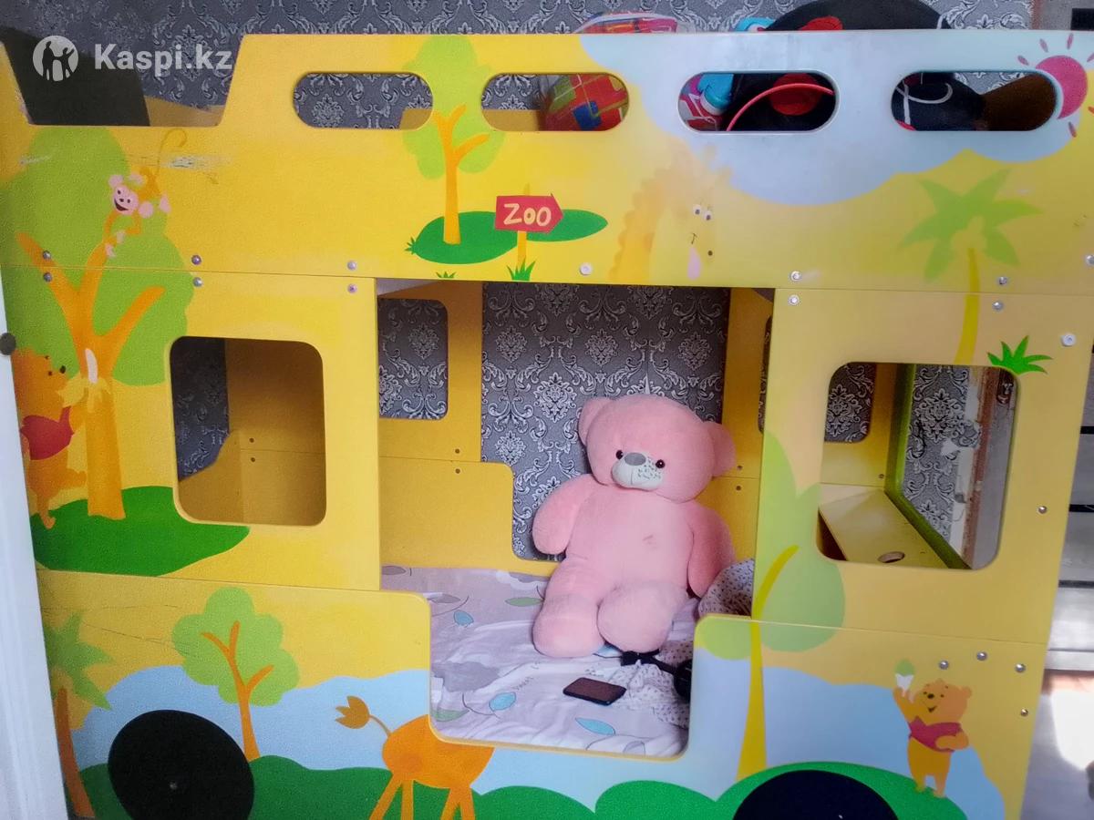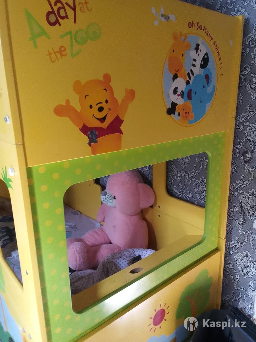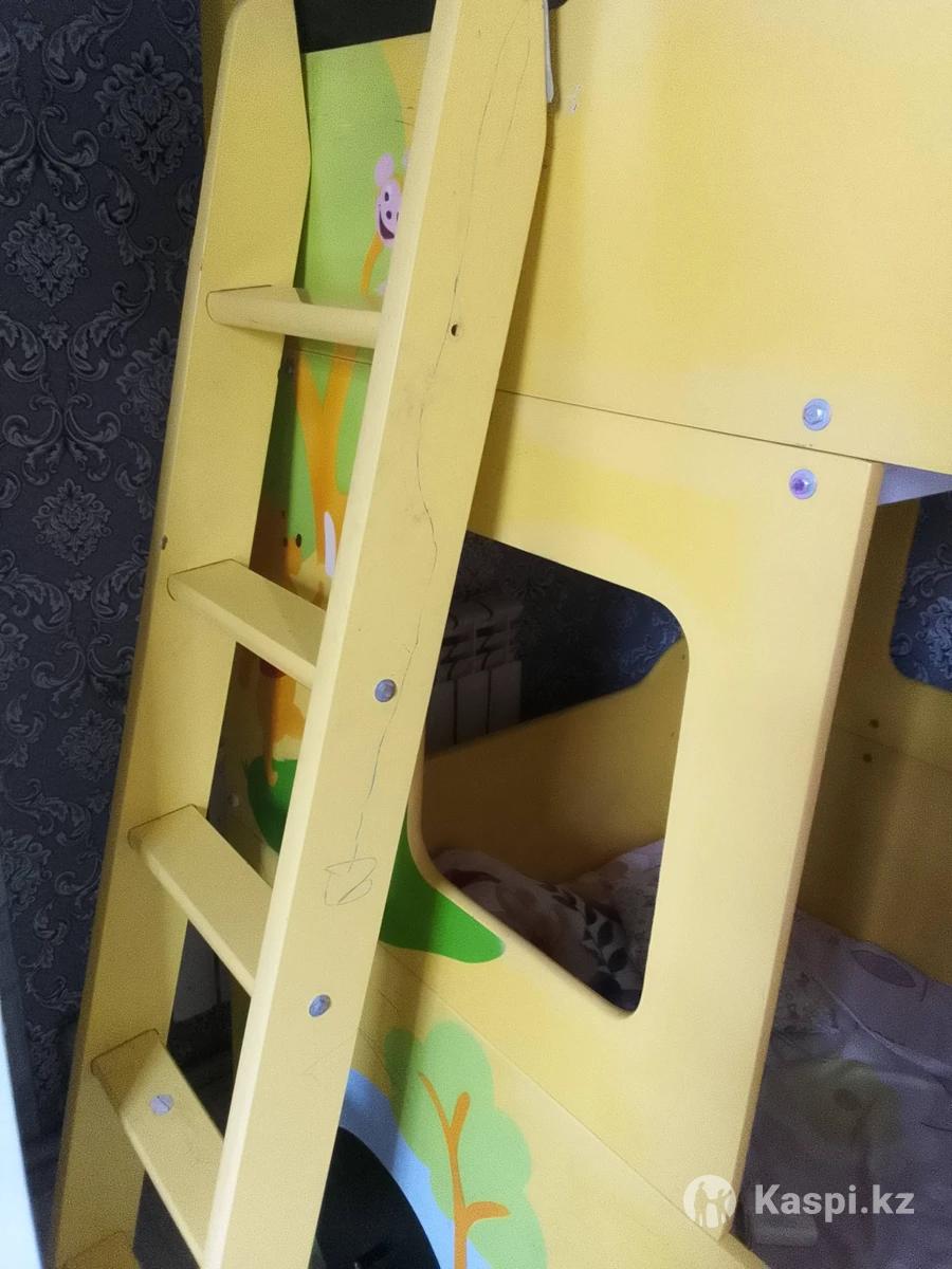 Кровать двухъярусная, не где не сломано , в хорошо состояние .Надо на лестницы надо кручек купить один .Причина дочка не стала спать на верху боится.
