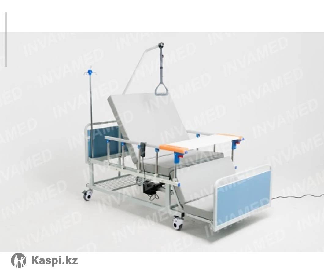 Кровать медицинская электрическая, трехфункциональная. Использовалась несколько дней. Принимает форму кресло, пациент полноценно сидит, что улучшает кровообращение и пищеварение, положение Фаулера,, санитарное устройство в комплекте с судном. Кровать оснащается матрасом толщиной 8 см, в защитном чехле влаго водонепроницаемый. Штанга для подтягивания для удобства пациента принимать удобное положение в кровати. Штатив для капельницы. Спинки кровати легкосъемные усиленные, обеспечивает доступ со стороны ног и головы. Столик для питания устанавливается на боковые поручни. Каждое колесо с индивидуальным тормозом.