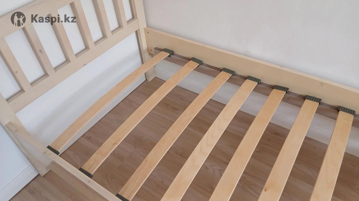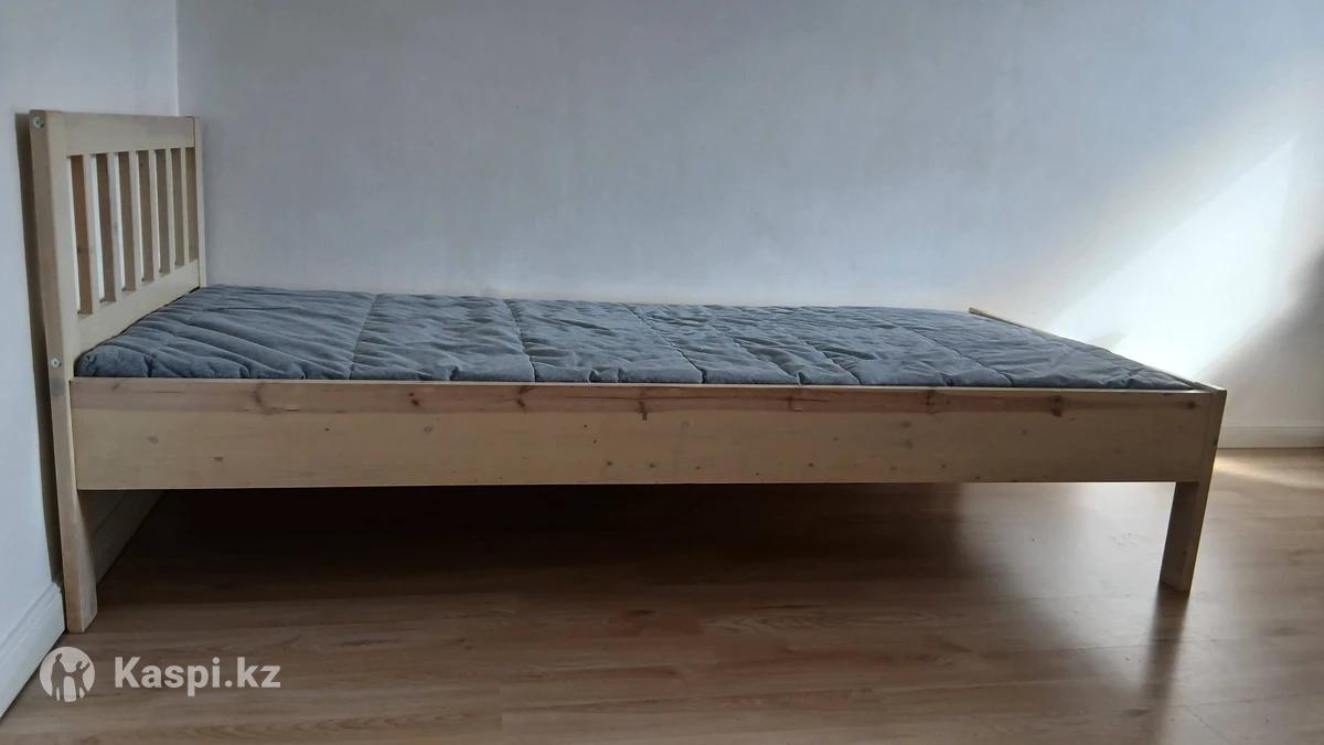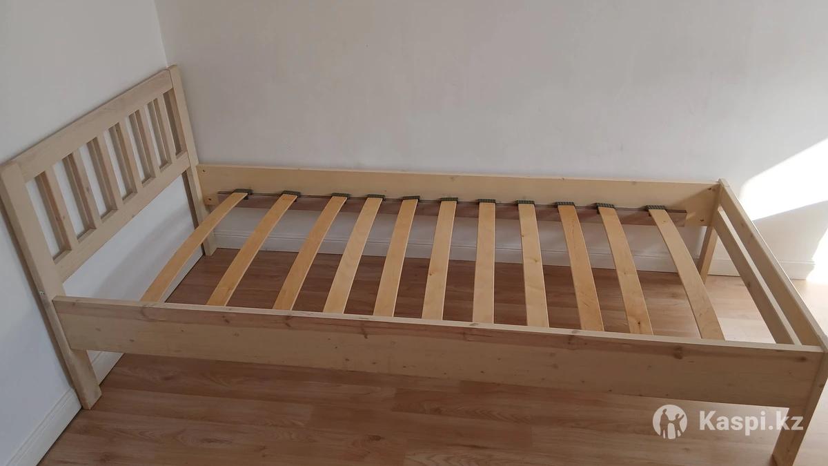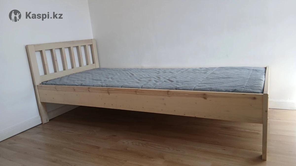 Кровать деревянная односпальная с реечным дном,с матрасом. Материал дерево покрытый краской. В отличном состоянии. Размеры : 200 × 90см. На ножках что очень удобно.Качество отличное.Скидка 65%. Каркас кровати без матраса 30000 тг, с матрасом 40000 тг.