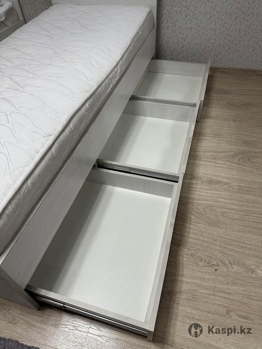 Кровать односпальная, размер 85х200 см цвет белый. тип: односпальная Материал: ЛДСП ширина: 85 см Высота 35 см. Имеется ниша, глубина 10 см, размер: 56х46. Продается вместе с матрасом две кровати.