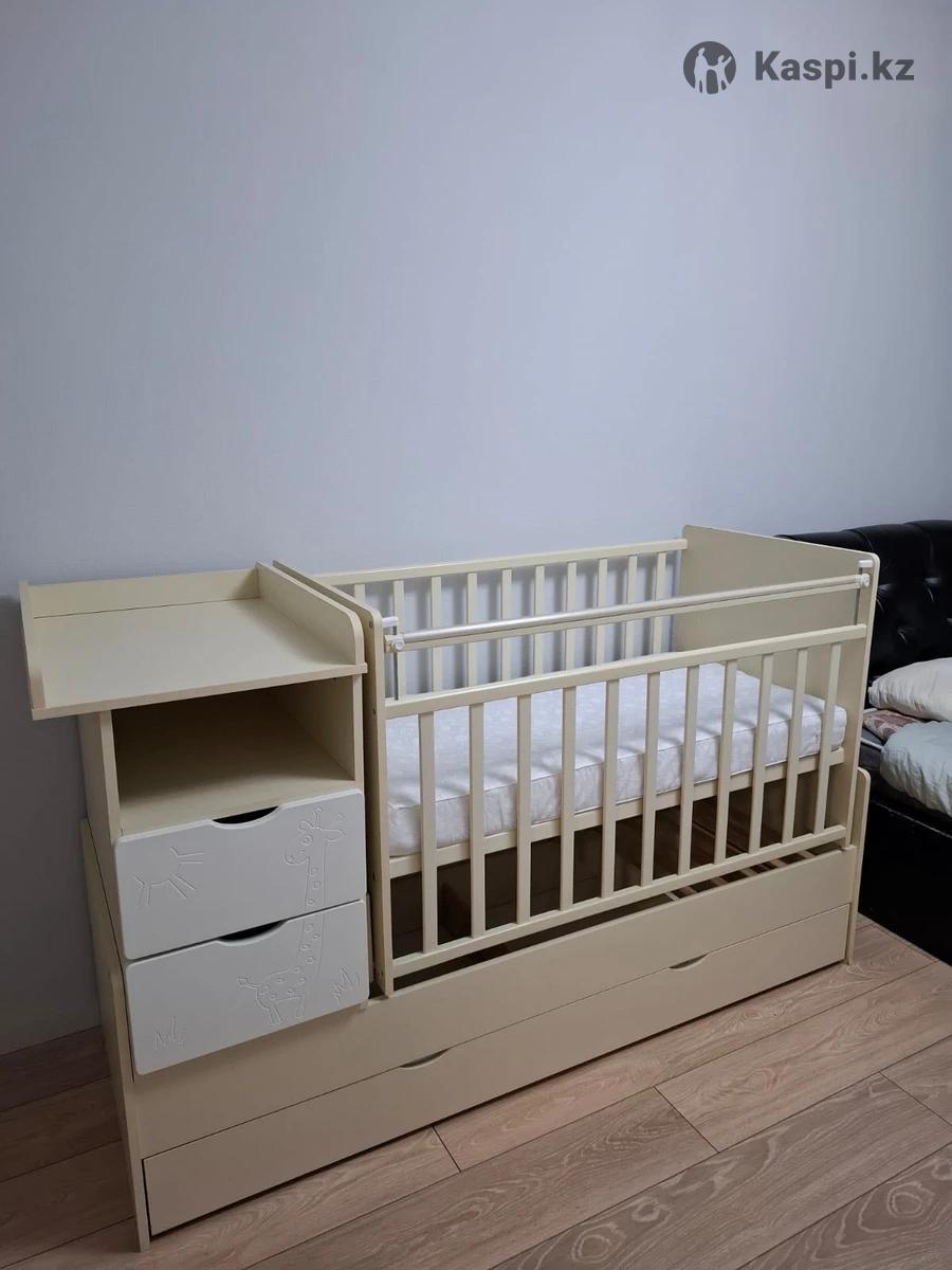 Продам нашу детскую кроватку Жираф, на каспипокупали за 119 000 тенге (июле)Ни разу не спали в нем, стоит как стоит.Малышка спала только со мной.Продаю, потому что больше не нужно.В подарок матрас Самовывоз Кроватка этой модели хороша тем, что она имеет множество функций, которых нет в других детских кроватях. Помимо основного спального места, у кроватки имеется специальный пеленальный столик, на который можно посадить малыша и помимо пеленания можно его переодеть или собрать на прогулку. У кроватки есть 4 ящика, в которых вы сможете хранить все необходимые детские вещи и принадлежности. Механизм раскачивания – поперечный маятник. Стенка кроватки опускается для того, чтобы более эффективно ухаживать за ребенком. Экономичная кровать с поперечным маятниковым механизмом и вместительными ящиками для хранения. Фасады из крашеной МДФ с забавной фрезеровкой в виде жирафа. Пеленальный стол с ограждениями стал гораздо удобнее, за счет увеличения размера столешницы. Боковины и ложе - древесина березы Спинки и комод - ЛДСП Фасады - МДФ Габариты кровати: 174х108х68см Габариты упаковки: 178х6х75, 122х13х75см Вес: 80 кг Гарантия: 12 месяцев Размер пеленального стола: 460 х 640 мм