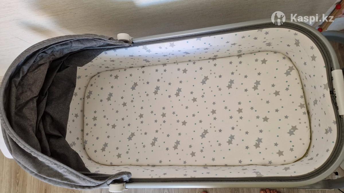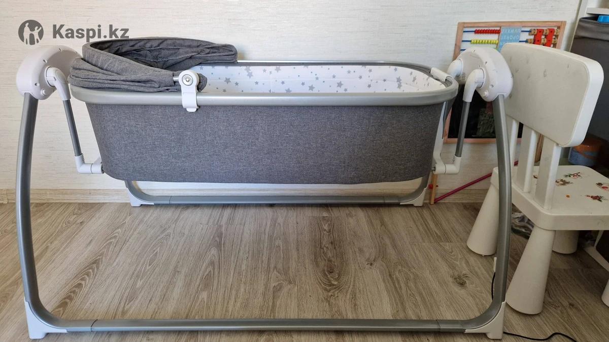Кроватка с автокачанием. Работает тихо. Есть музыка. На пульт управления. Работает от сети и можно на батарейках. Ребенок почти не спал в кроватке. Состояние новой. Самовывоз район Плазы