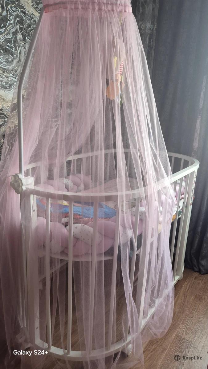 Шикарная кроватка-трансформер с полным комплектом! Текст: Продаю нашу любимую кроватку 7в1. Идеальная, уютная и самая фотогеничная! Вам не нужно ничего докупать: Круглая/Овальная форма Балдахин и мобиль Матрас в комплекте Состояние новой! Сразу ставишь и пользуешься. (очень выгодно за такой комплект!) 📲 Звоните/пишите!