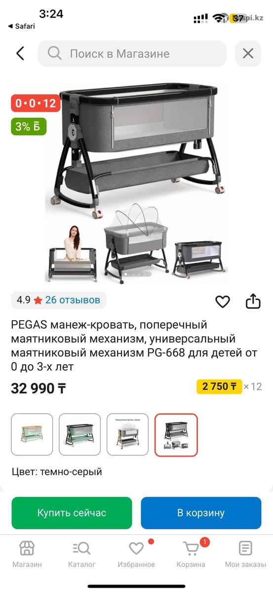 Продам кроватку колыбель в хорошем состоянии. Покупали за 35 тыс тг. Пользовались 3 месяца. Одна сторона опускается, можно к кровати поближе поставить. Можно как колыбель использовать. Есть пеленальная доска и сетка от защиты москитов( но мы ими не пользовались). Самовывоз.