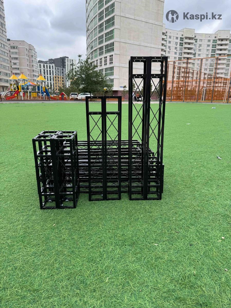 Круглый каркас двойной для фотозоны диаметры 2м и 2м20см Аренда за сутки 5000тг Одинарный каркас диаметр 2м 3500тг Мы находимся на ЖАҒАЛАУ-3 Есть так же фермы для банера размеры от 22м до 35м цена 800тг за погонный метр. Так же имеется каркас из хромированых труб, можем предоставить разного размера! Наш адрес:Ч.Айтматова 36/1 ЖАҒАЛАУ-3