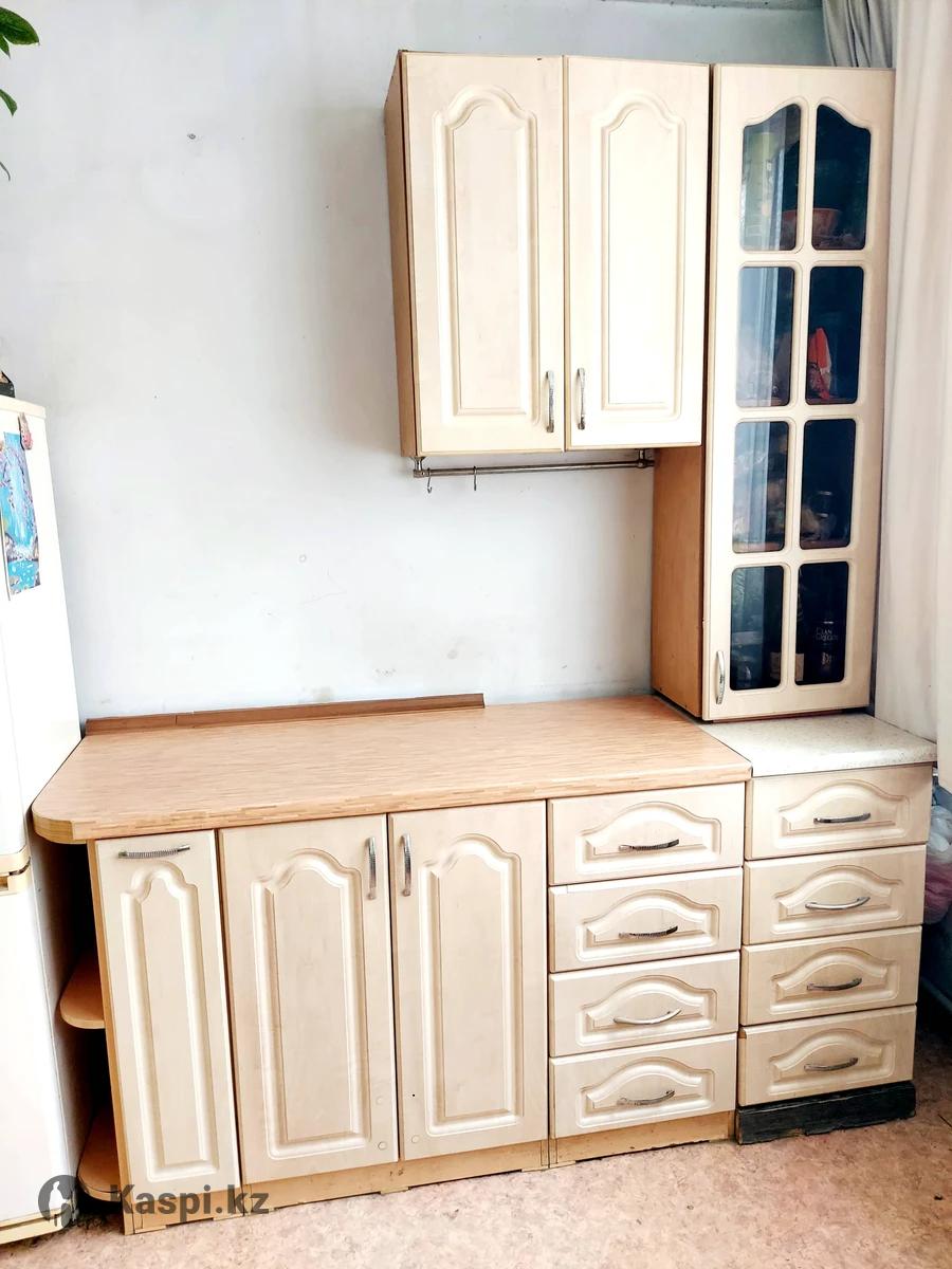 Кухня длина 175см с подсветкой столешницы, с бутылочницей, 8 выдвижных ящиков, буфет, шкаф с сушилкой для посуды, шкаф для продуктов, глубокий тумбовый стол, столешница толщина 4см. Цена 25000тг Находится в районе улиц Раимбека Ауэзова